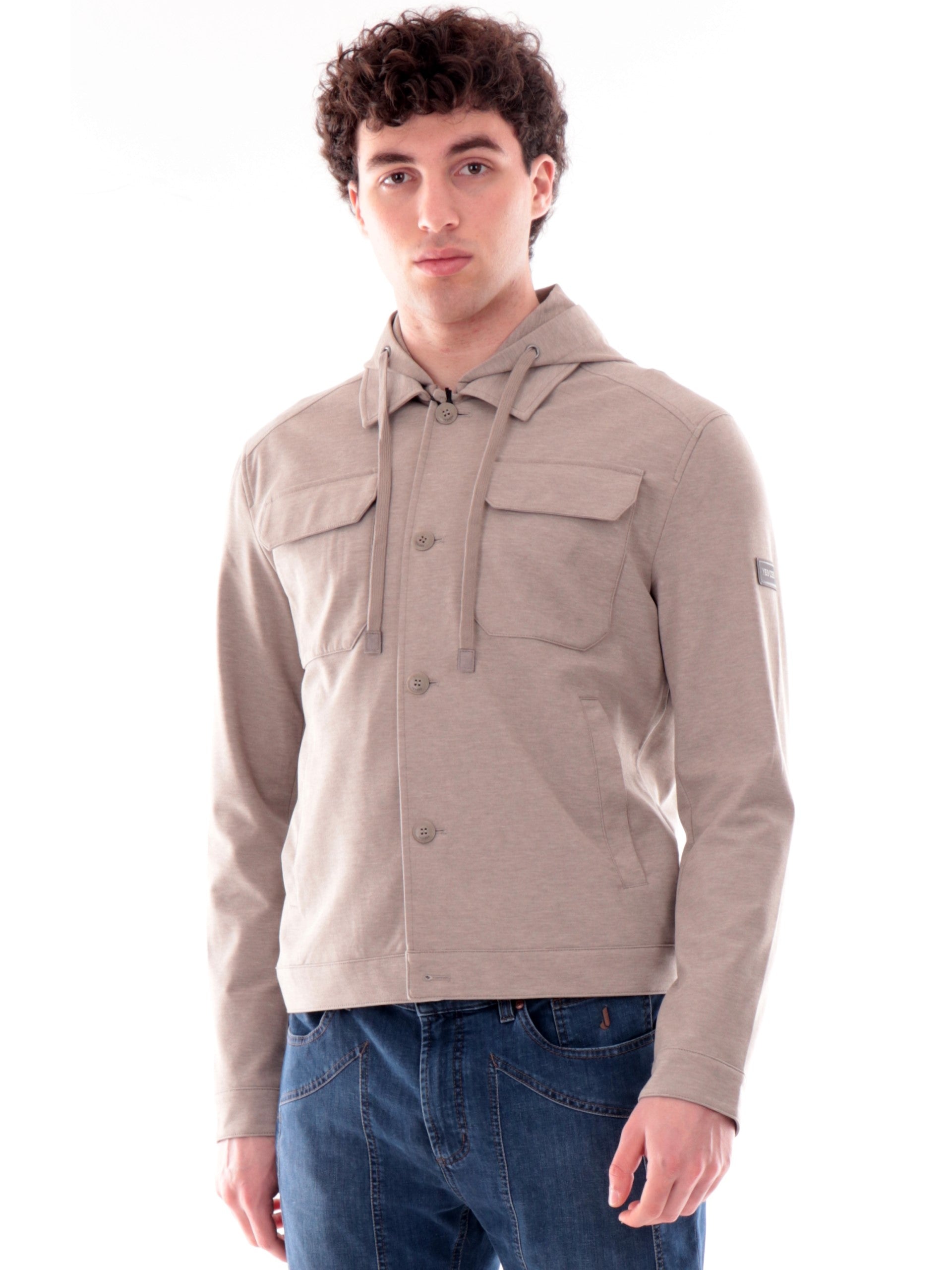 Giacca felpa beige da uomo Yes Zee con cappuccio removibile. Questa felpa beige da uomo, realizzata da un tessuto morbido e soffice al tatto, perfetta per la mezza stagione, è caratterizzata dal cappuccio staccabile, chiusura con bottoni, due tasche altezza petto con patta e due tasche laterali aperte, logo del brand applicato sulla manica sinistra, polsini e fondo regolari