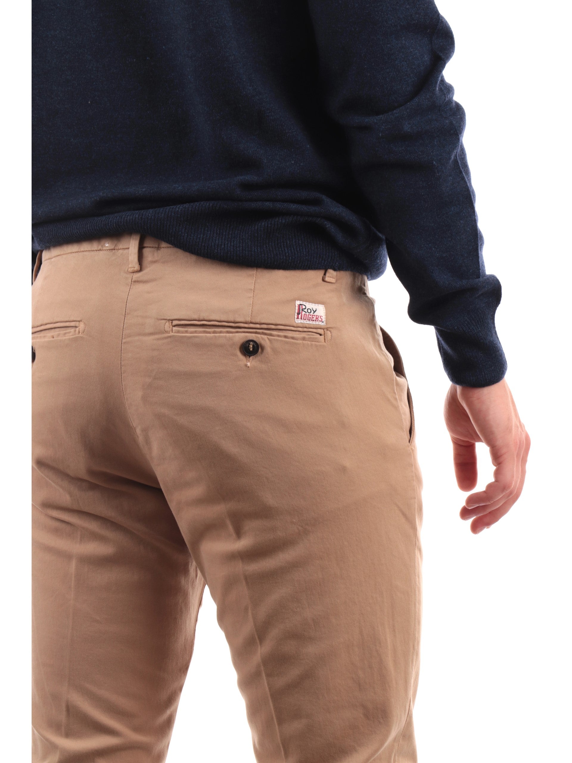 Pantaloni Roy Rogers cammello da Uomo con vestibilità slim fit. Questi pantaloni uomo chino cammello sono caratterizzati da un morbido cotone elasticizzato che dona a questi pantaloni Chino Uomo il massimo della comodità e comfort.