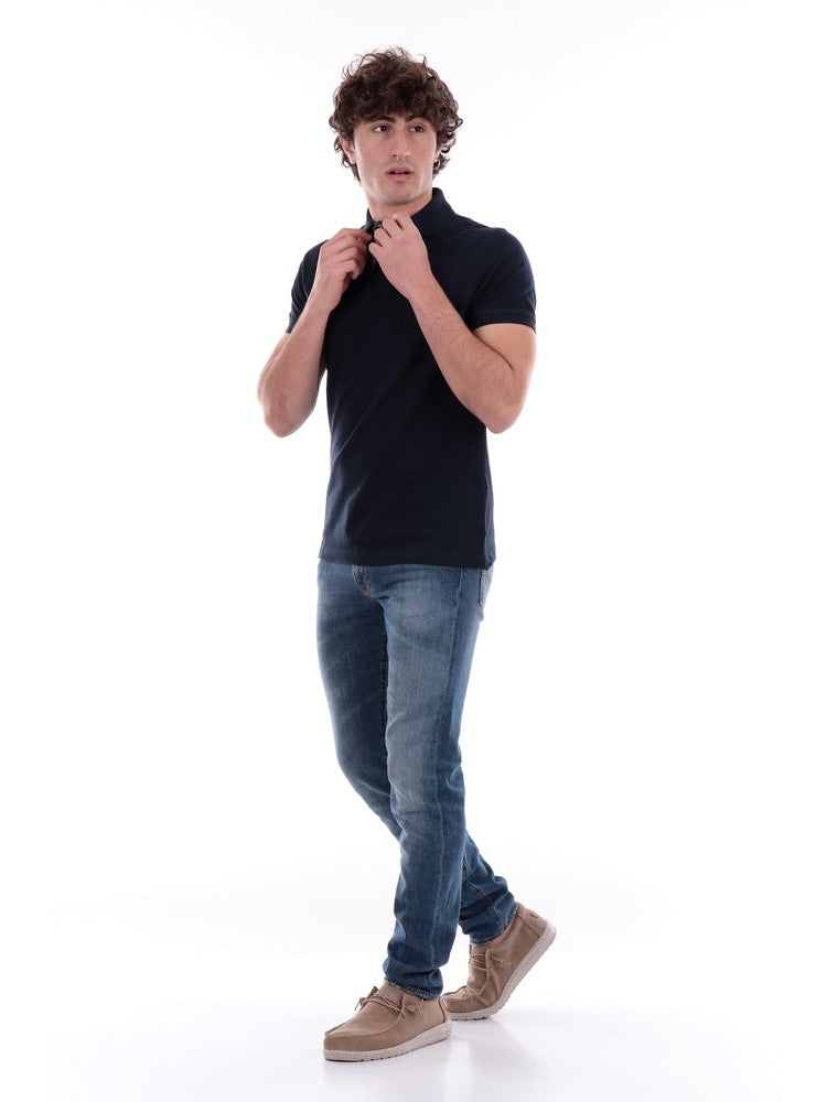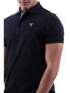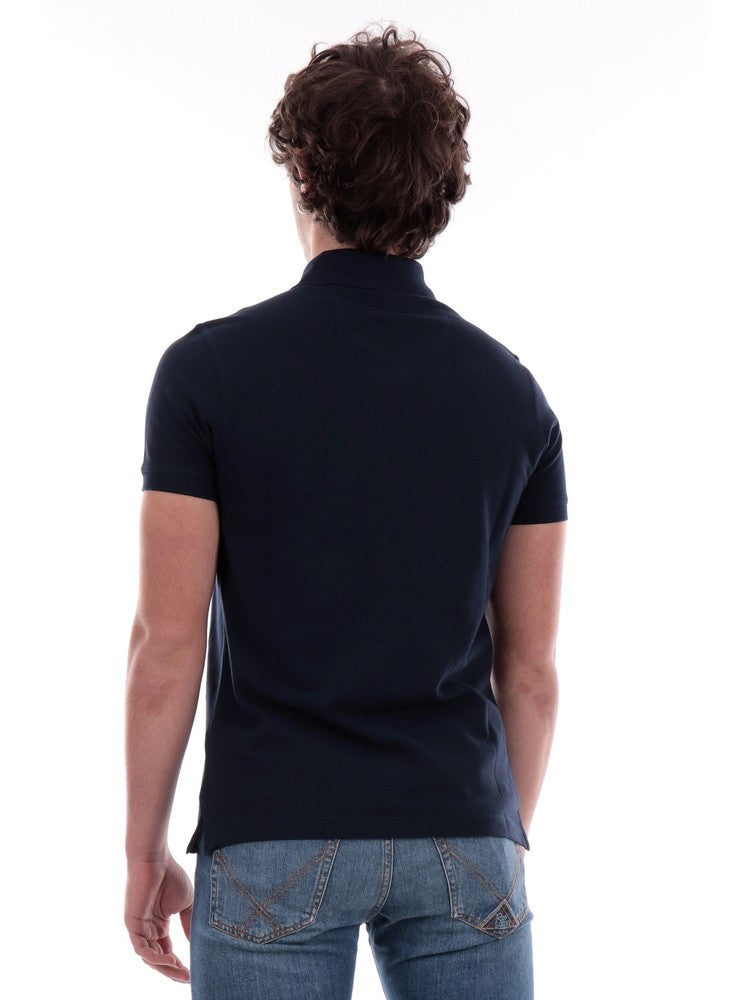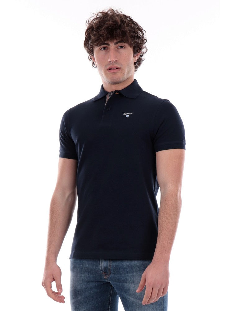 Blaues Herren-Poloshirt von Barbour mit aufgenähtem Barbour-Logo auf der Herzseite MML0012