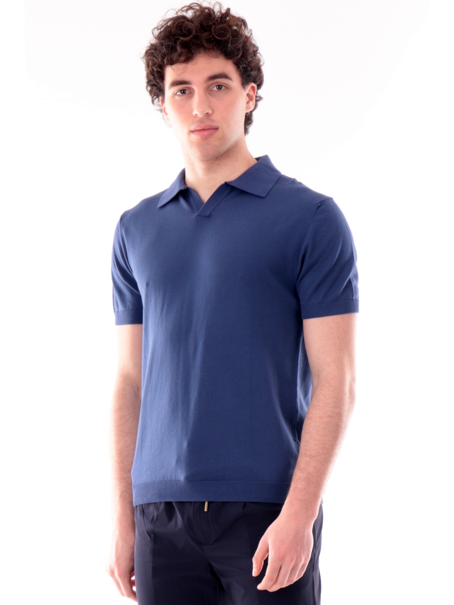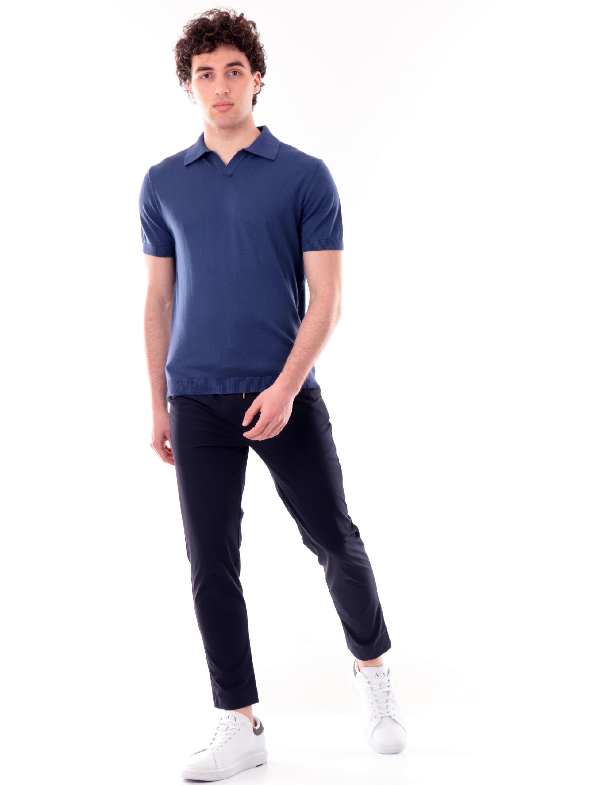 Polo in maglia celeste da uomo scollo a V Velk Derby. Questa polo in maglia, realizzata 100% in puro cotone, è caratterizzata dallo scollo a V, maniche corte e fondo elasticizzato a costine. Questa polo da uomo è perfetta per qualsiasi tipo di look