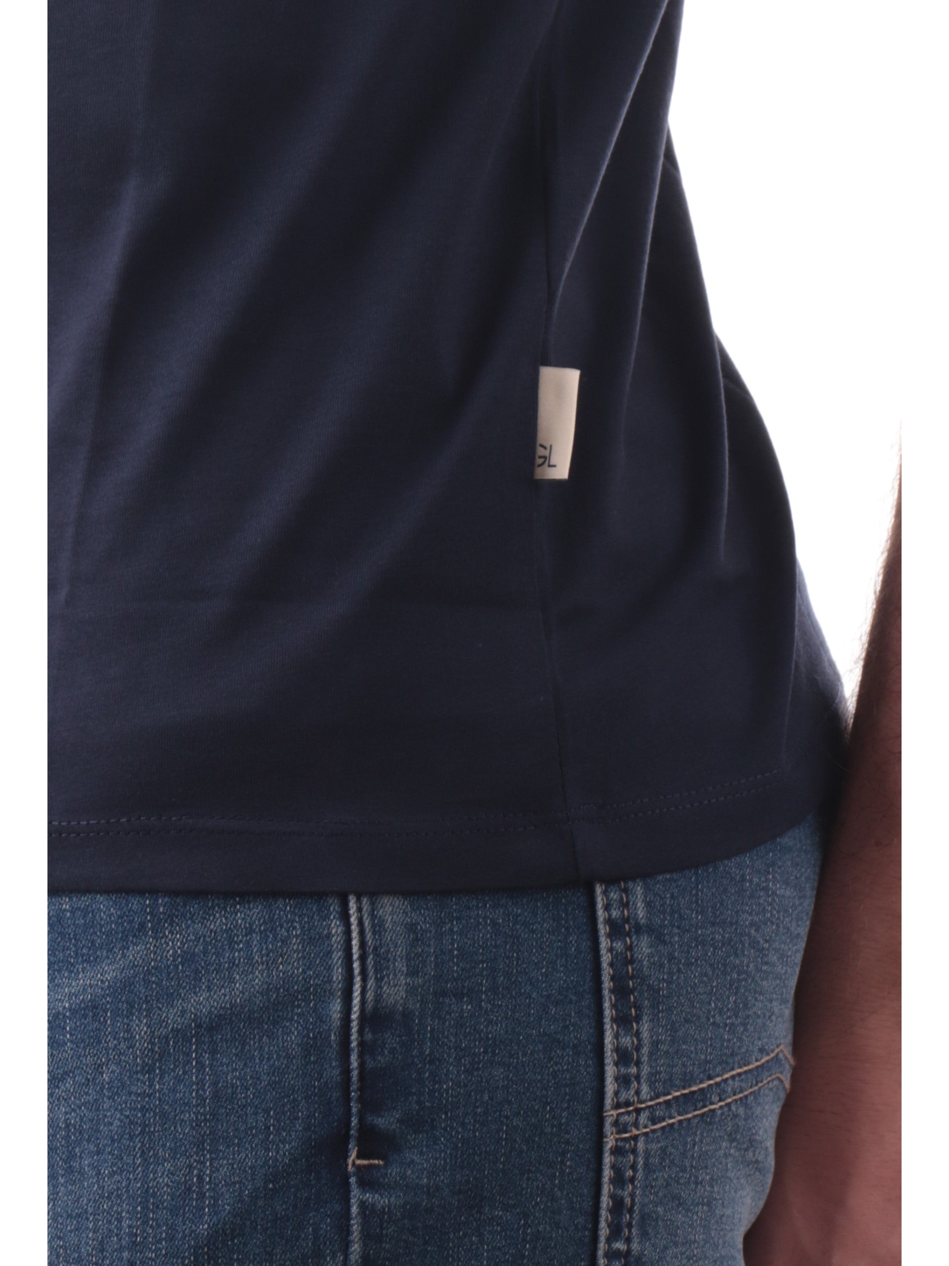 Maglia Gianni Lupo blu girocollo da uomo maniche corte GL1078FF25, realizzata in 100% puro cotone. Questa t-shirt uomo Gianni Lupo blu ha le maniche corte e il logo del brand applicato sul fondo.
