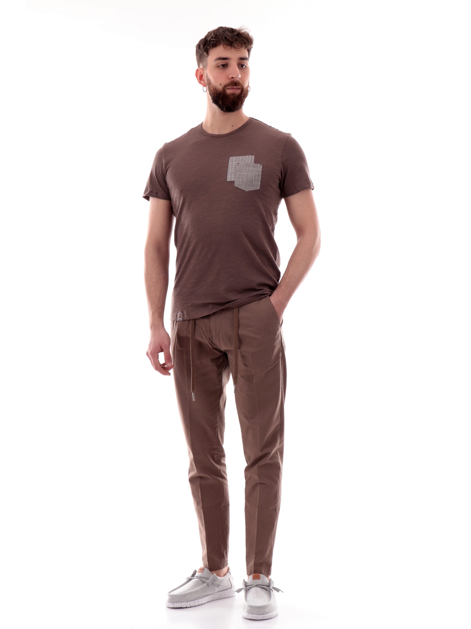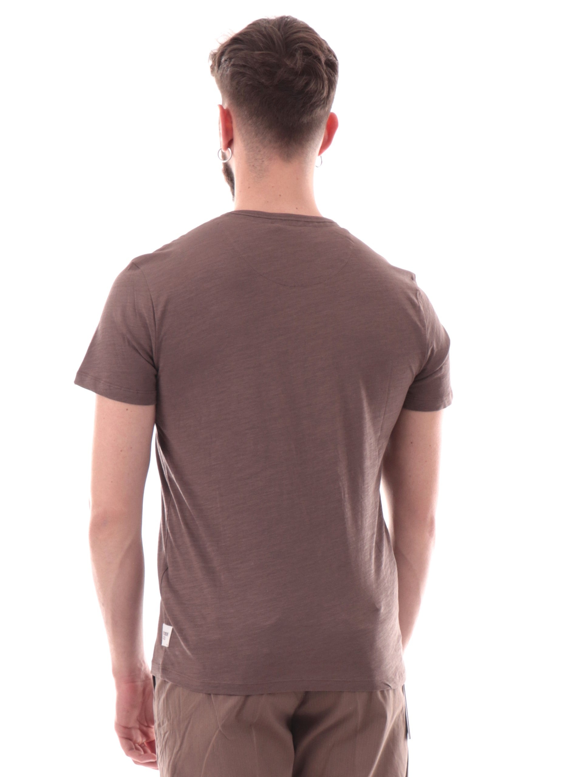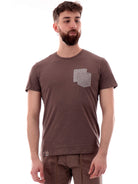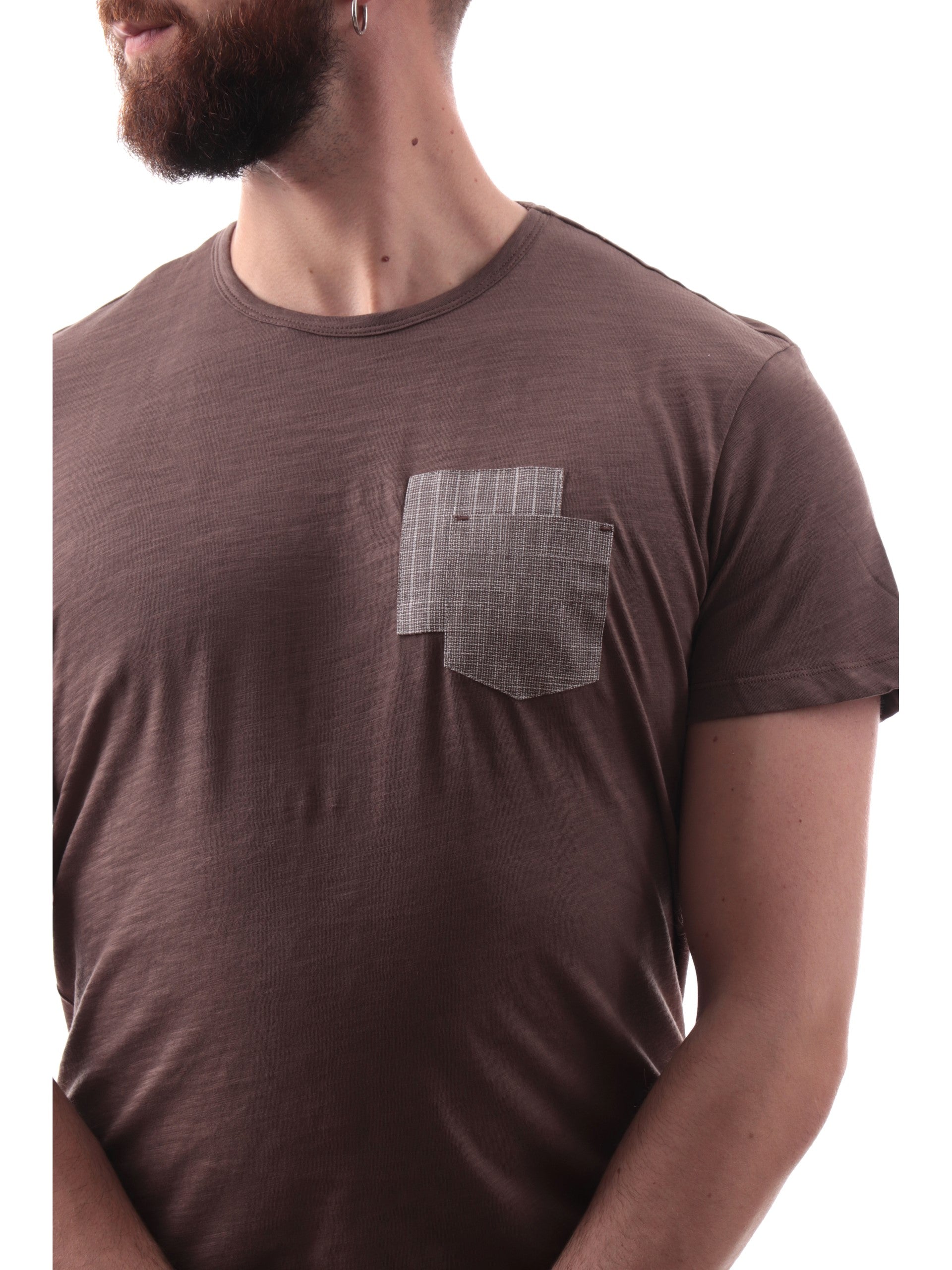 T-shirt Yes Zee marrone girocollo da uomo con taschino T736S500