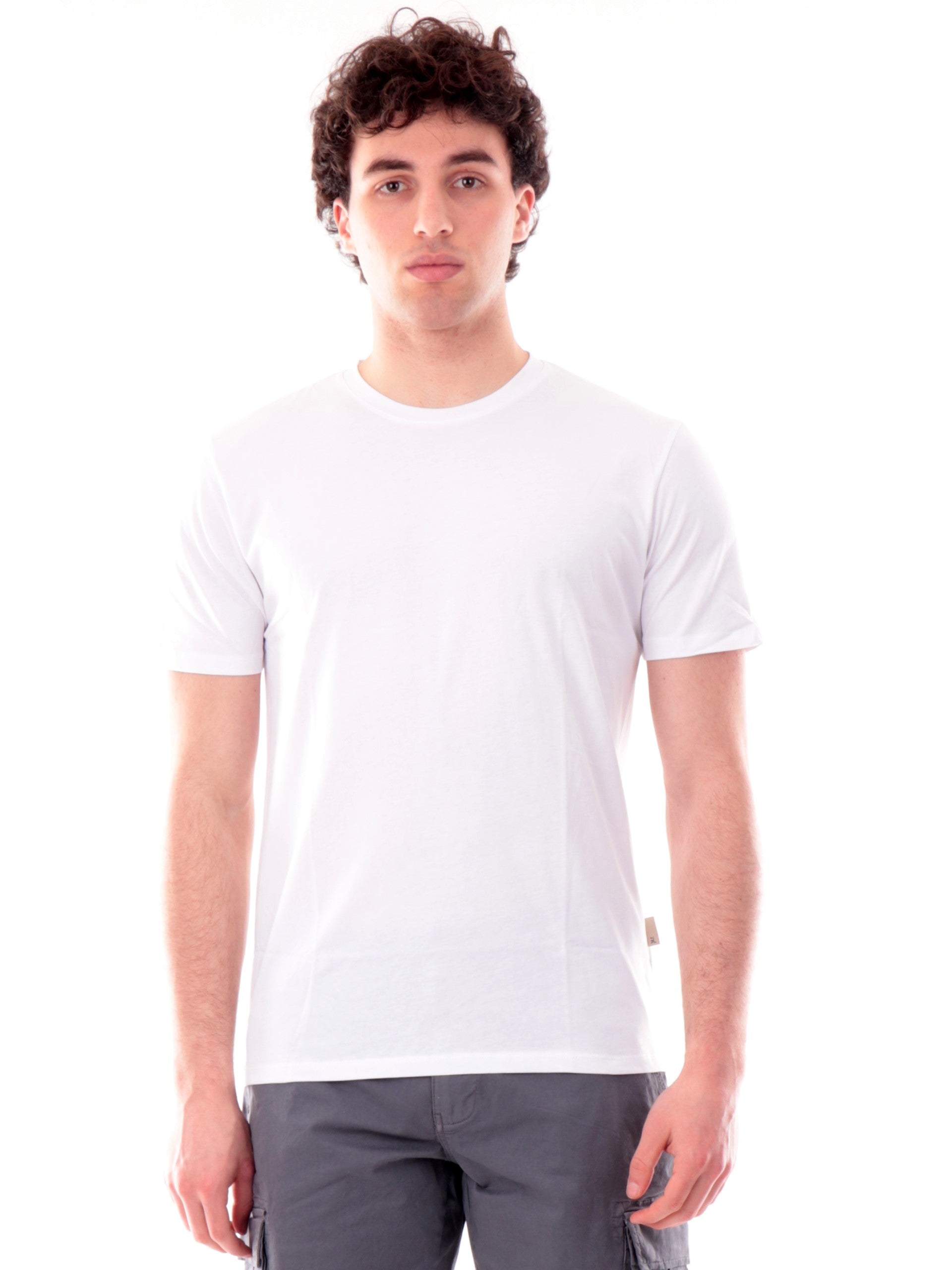 T-shirt bianca da uomo Gianni Lupo. Questa t-shirt bianca, realizzata 100% in puro cotone, perfetta per qualsiasi tipo di outfit e perfetta per la stagione primavera-estate, è caratterizzata dal girocollo, maniche corte e fondo elasticizzato