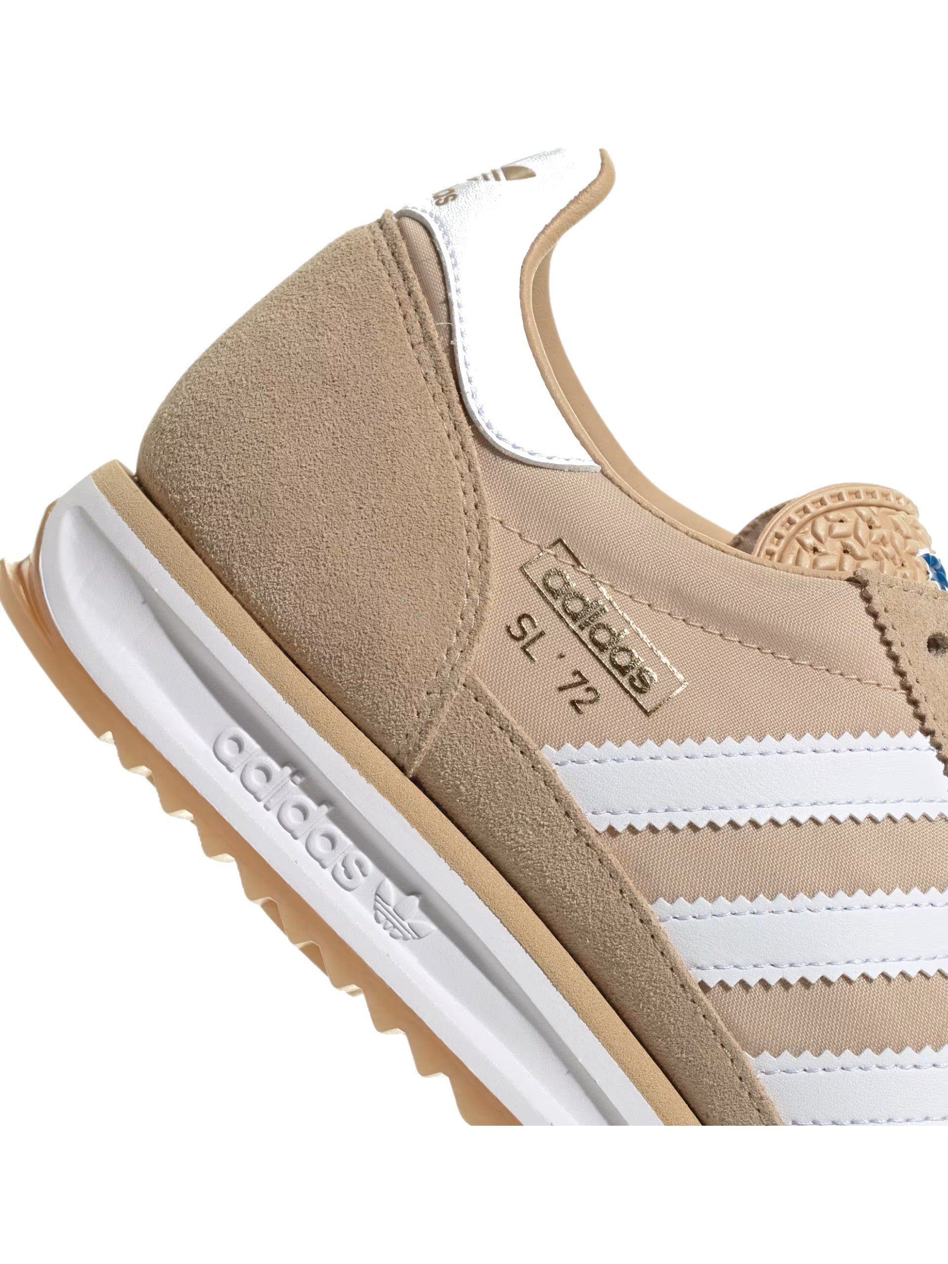 Scarpe Adidas SL 72 RS beige. Queste sneakers Adidas SL 72 hanno la tomaia in mesh con inserti suede, la suola in gomma e la soletta logata rimovibile. Sul davanti di queste SL 72 troviamo la classica chiusura con lacci, le 3Stripes ambo i lati e il lettering SL 72 oro