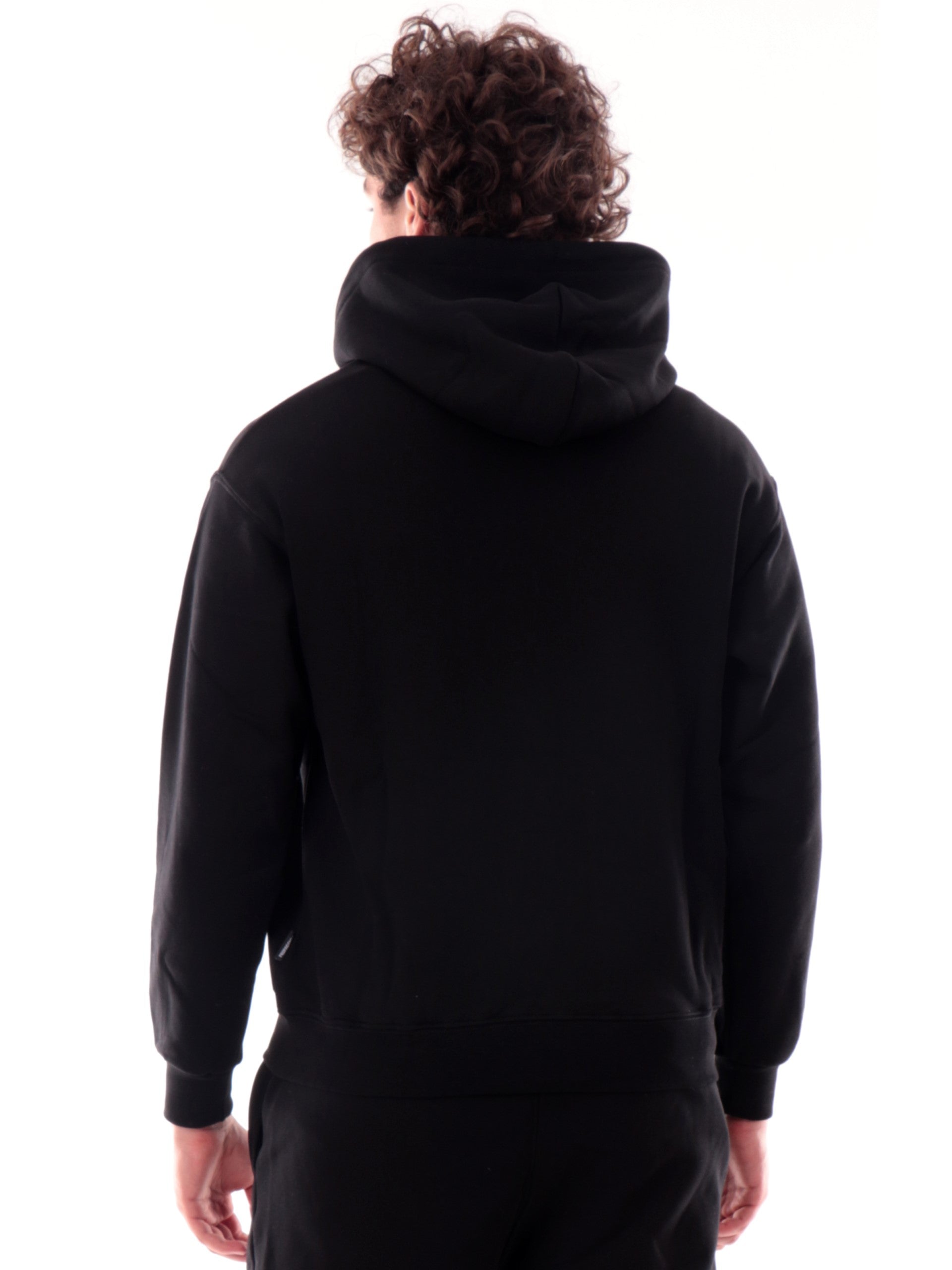 Felpa Propaganda nera Logo Embroidery full zip 25FWPRFE, realizzata in 100% puro cotone. Questa felpa Propaganda ha il cappuccio fisso regolabile con laccetti, la chiusura full zip centrale, due tasche laterali aperte, il Logo Embroidery lato cuore, polsini e fondo elasticizzati.