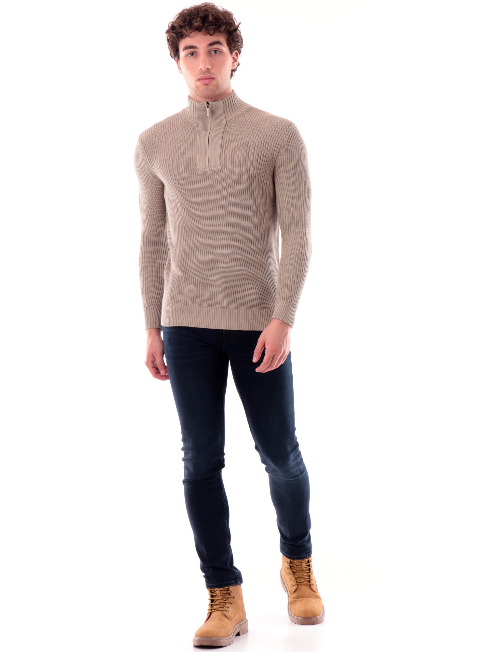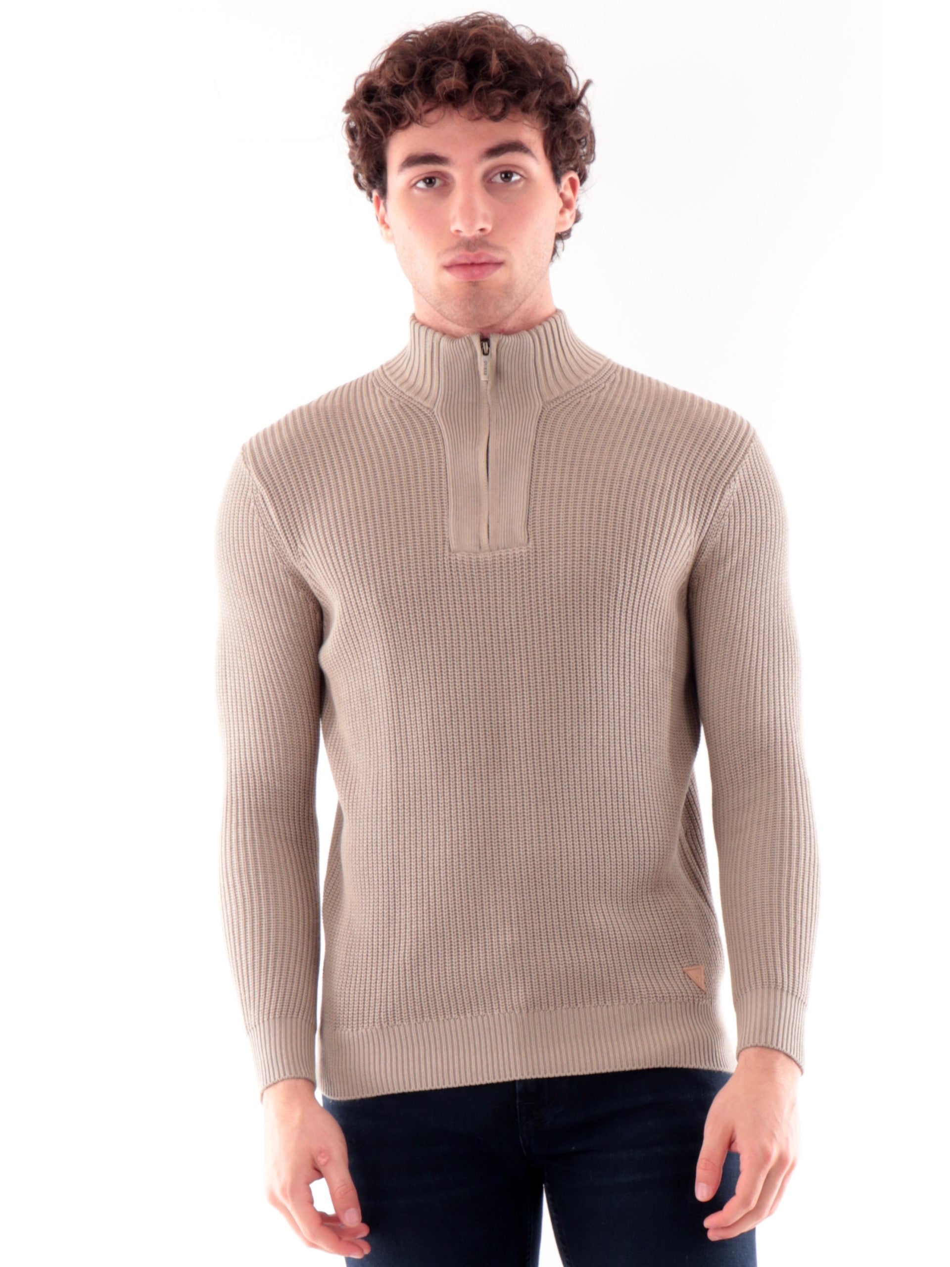 Maglione Guess beige mezza zip da uomo collo alto Headley M5YR04Z3FB1