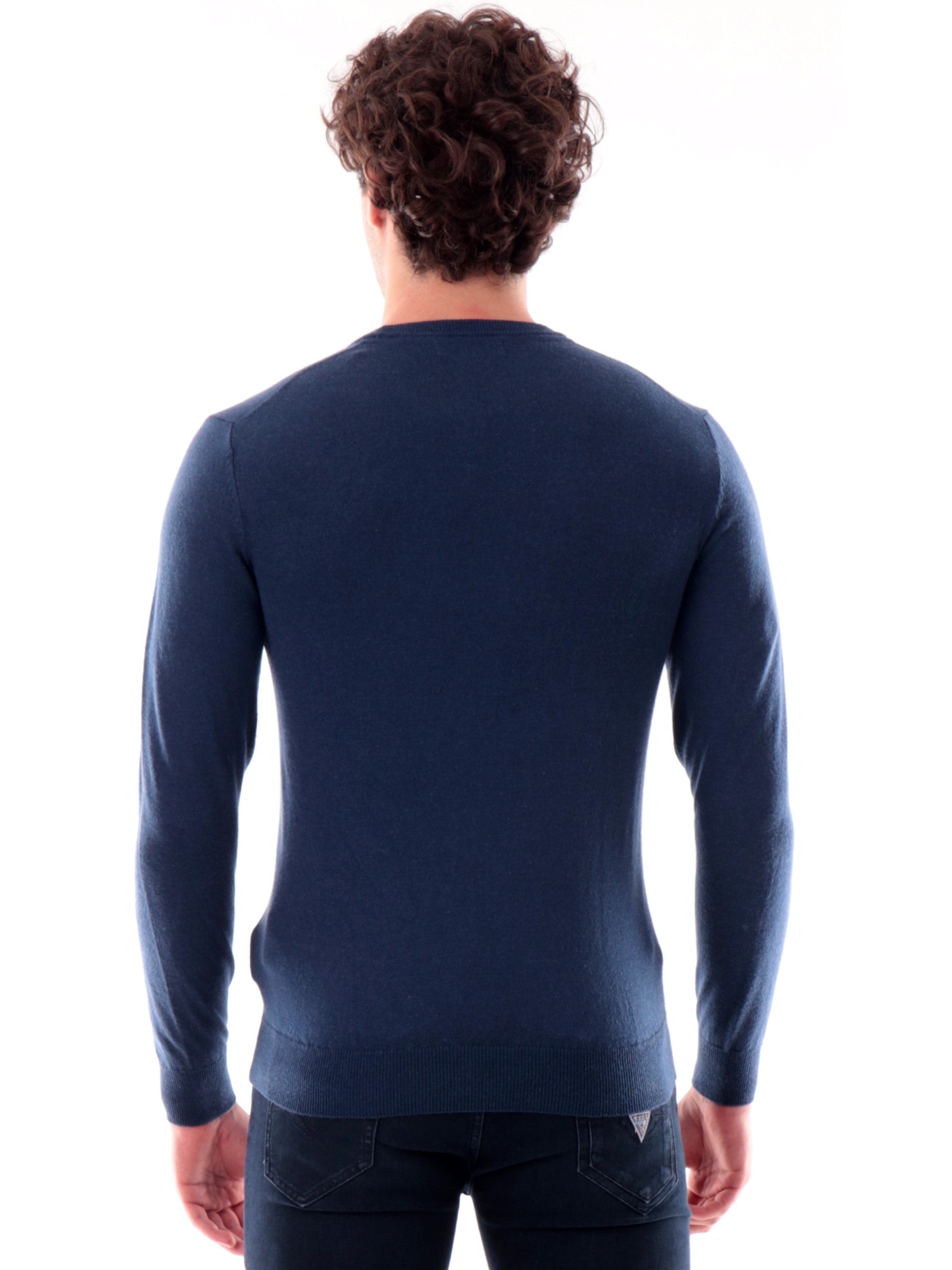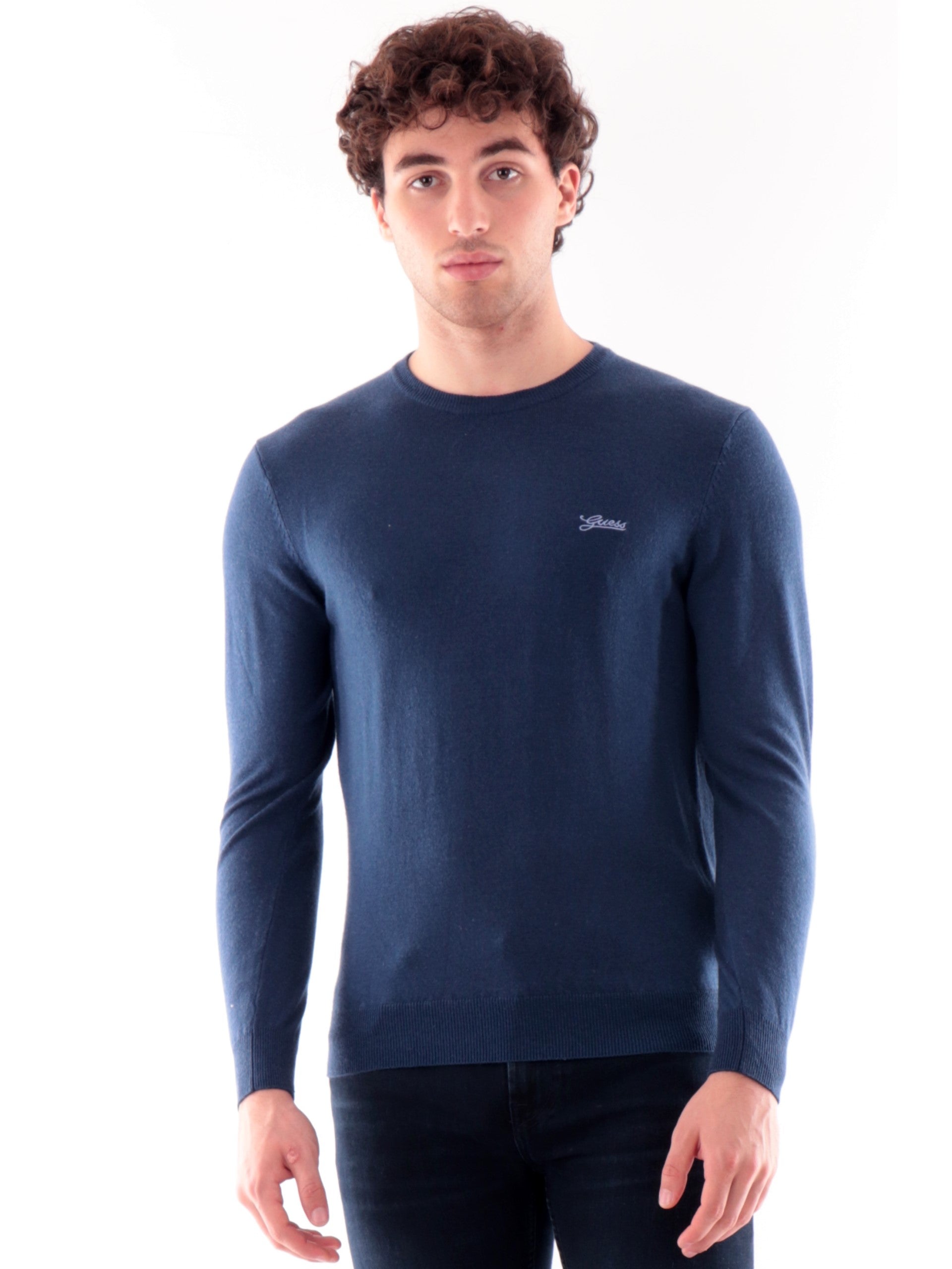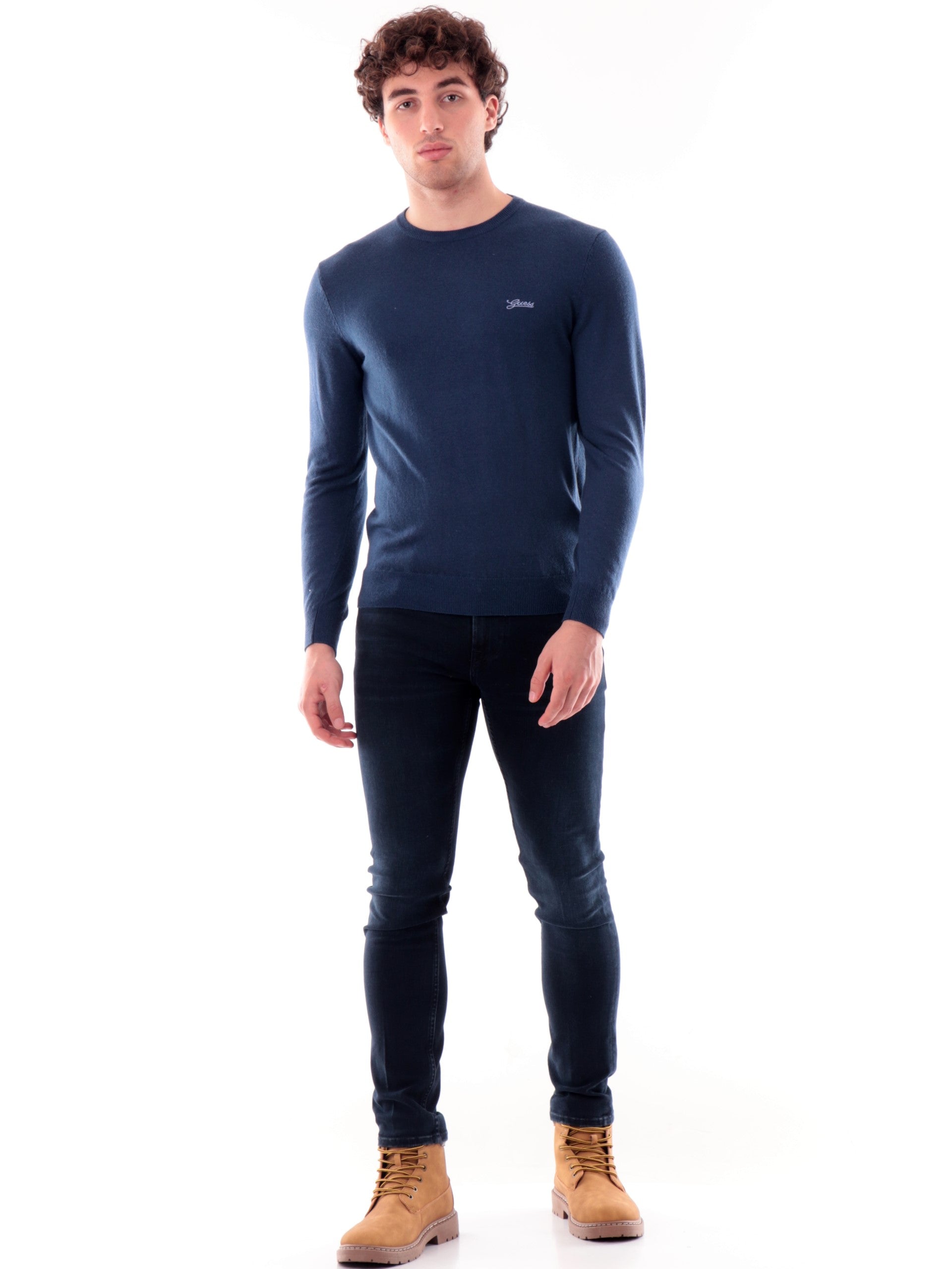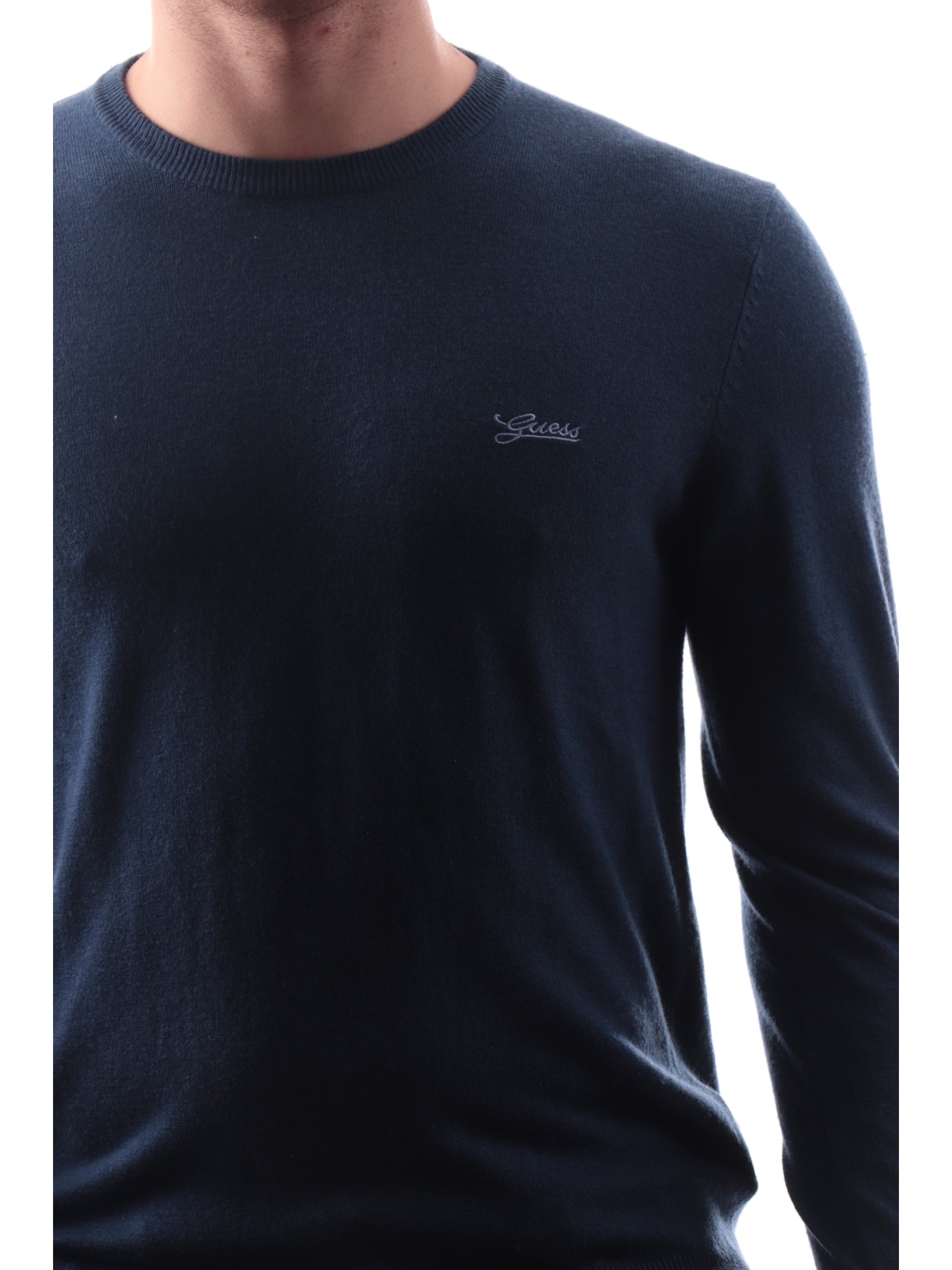 Maglione Guess blu girocollo da uomo Daniel logo ricamato M5YR26Z0122