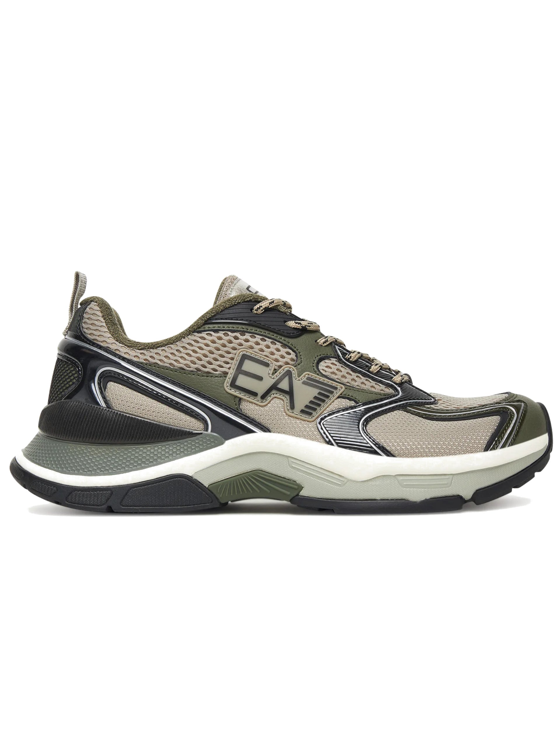 Sneakers Emporio Armani EA7 verdi e beige da uomo con tomaia in tessuto traspirante X8X249XK446