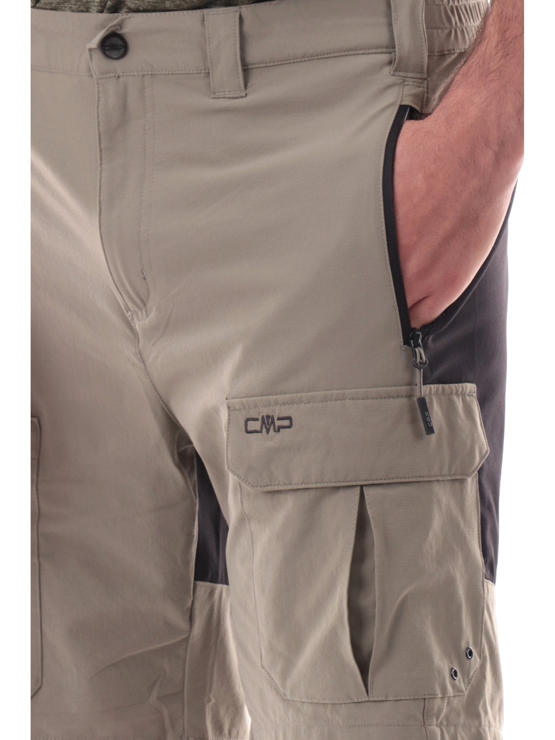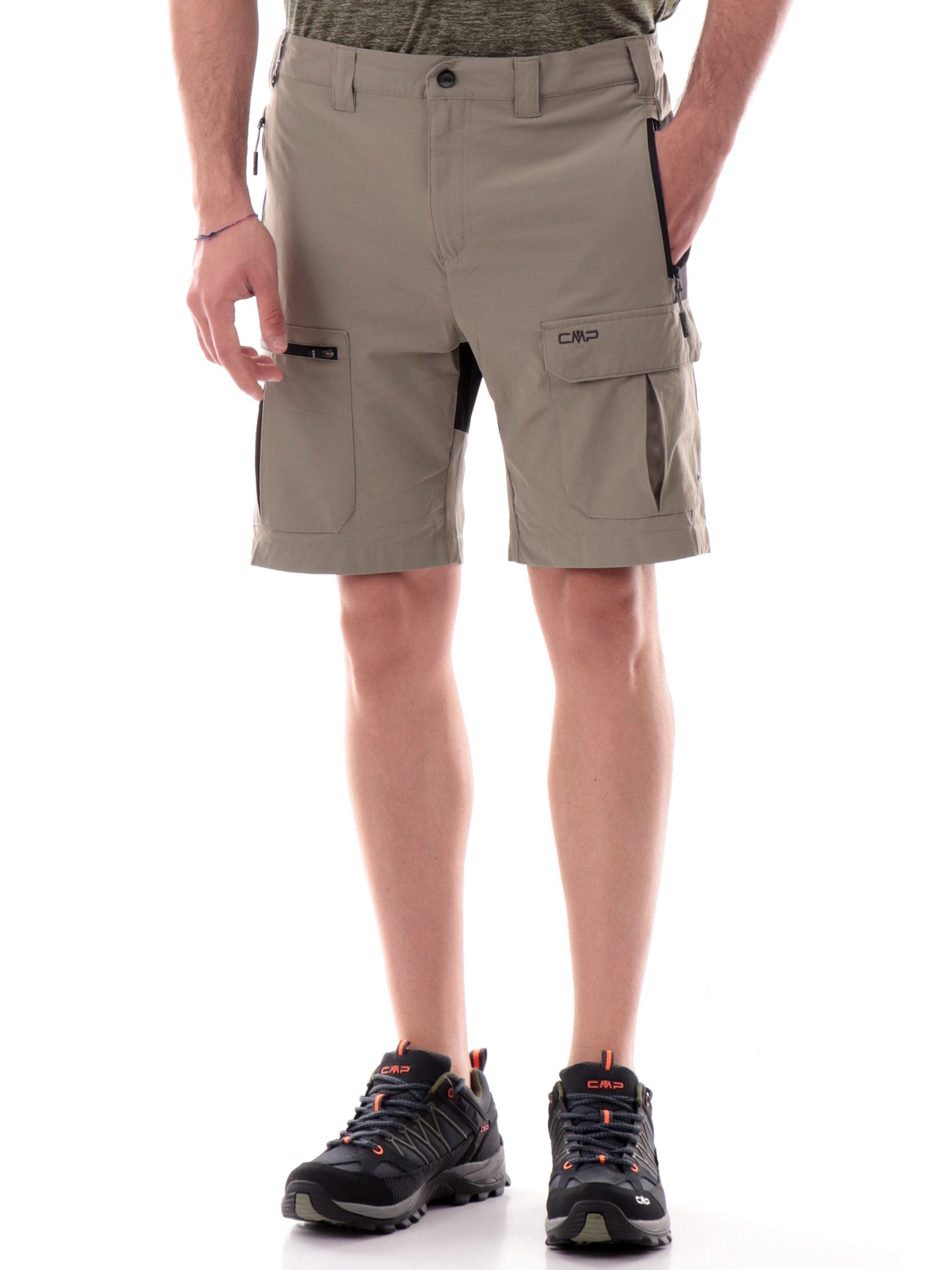 Bermuda trekking CMP verdi militari e neri da uomo 35T5357E663. Questi bermuda CMP verdi hanno il punto vita elasticizzato la chiusura con bottone più zip, due tasche laterali con chiusura zip, il taschino posteriore con zip, un tascone altezza ginocchio con patta con velcro a lato sinistro ed il fondo regolare.