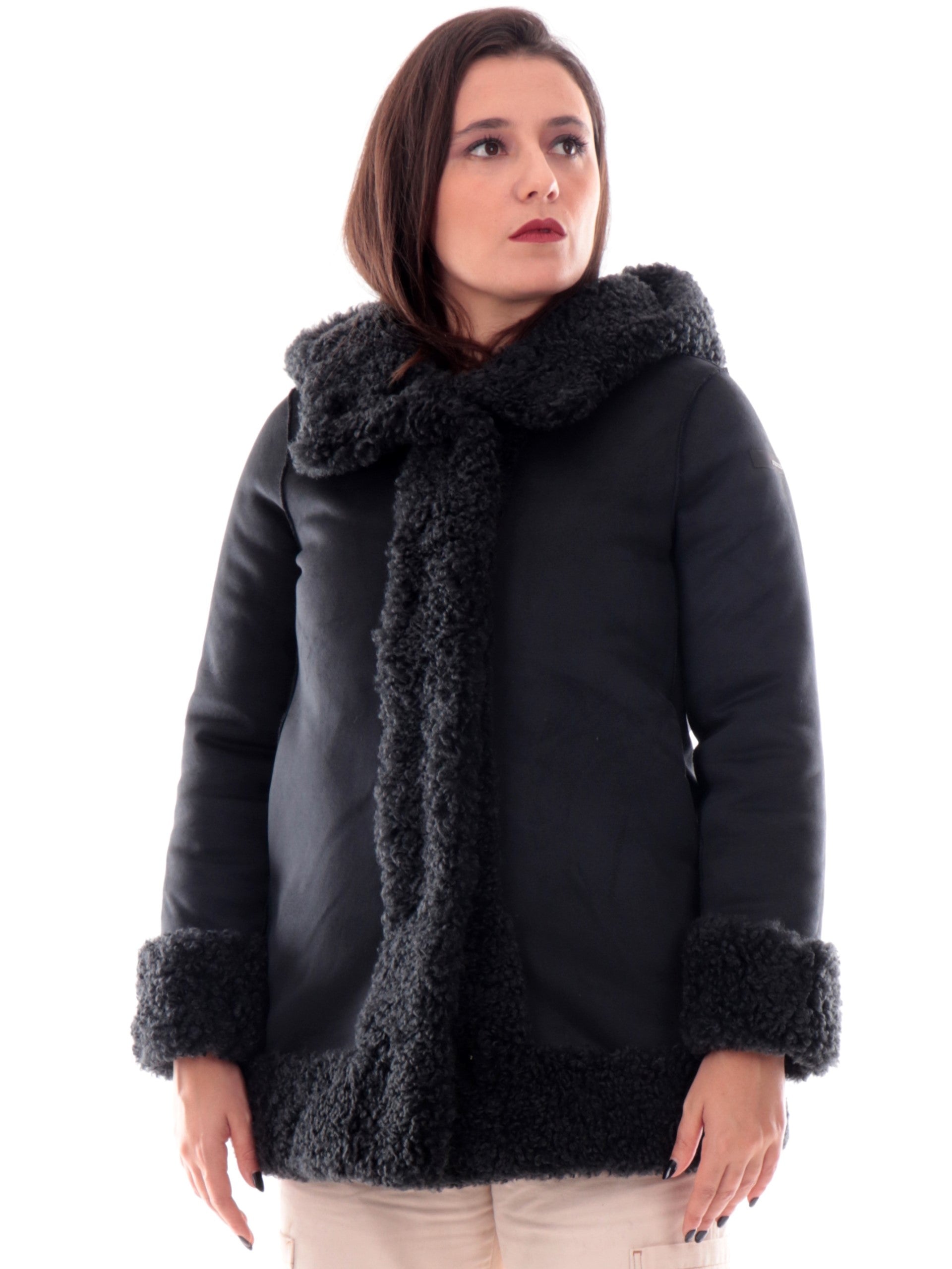 Cappotto RRD verde scuro da donna eco teddy Lamb Hood Wom reversibile W2557111