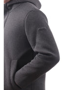 Cappotto Unity grigio da uomo Bread, realizzato in tessuto impermeabile, antivento e resistente. Questo giubbotto Unity grigio è realizzato dal tessuto tricotech. Bread è caratterizzato da cappuccio fisso, chiusura full zip centrale con doppio cursore nascosta da una patta a bottoni, due tasche laterali con bottoni, una tasca interna con zip, fondo regolabile con lacci e il patch del brand sulla manica sisnitra.