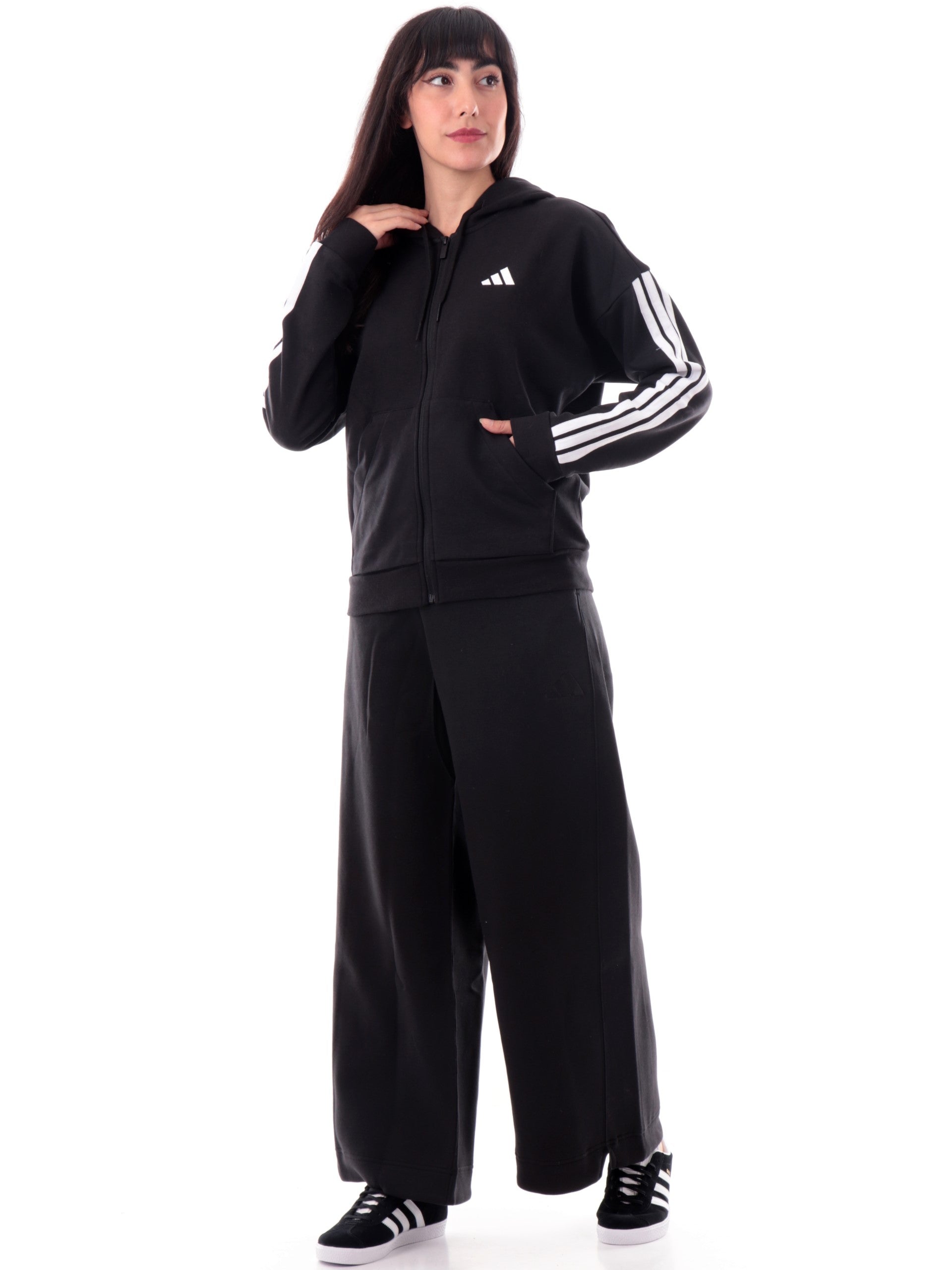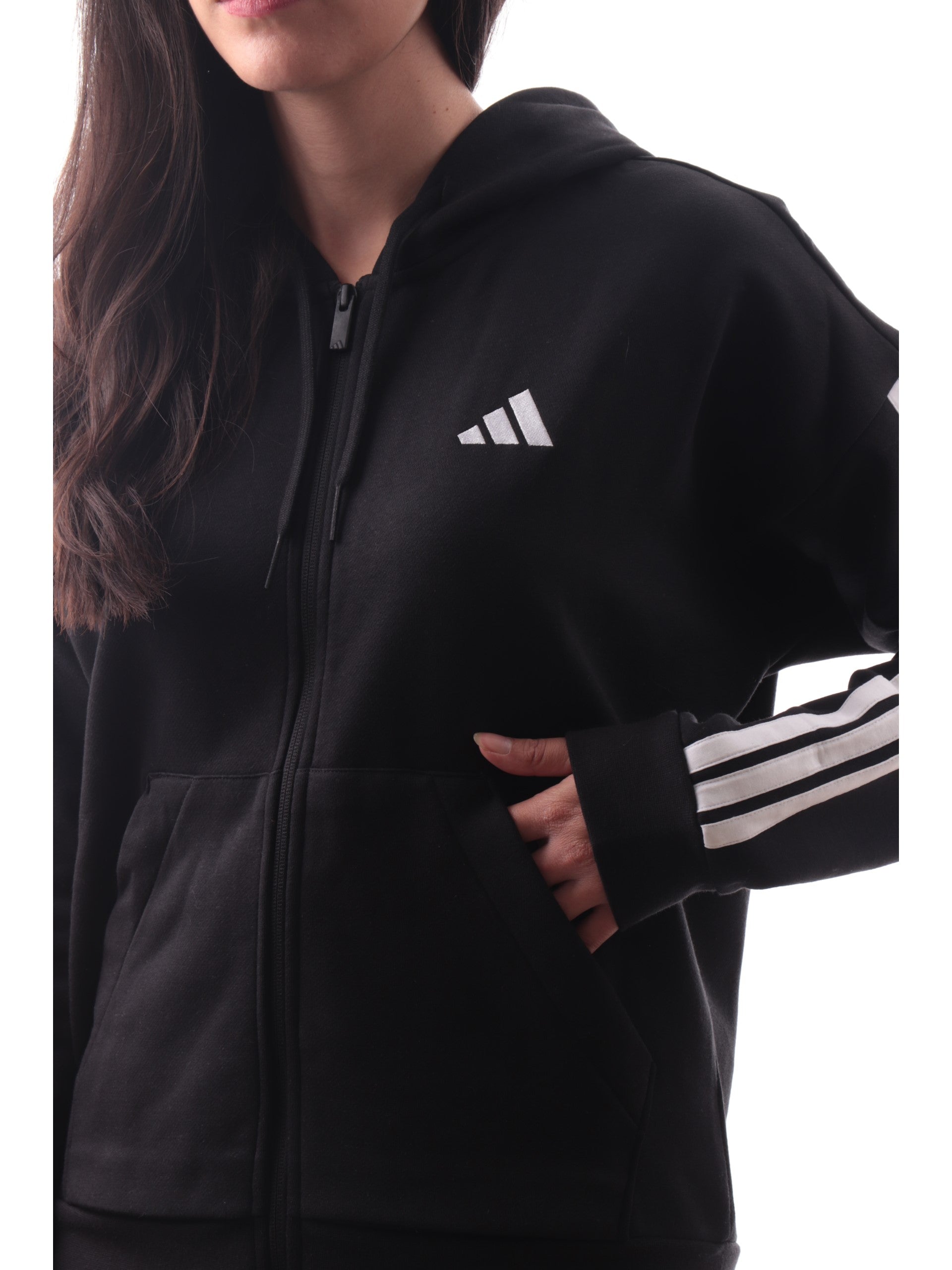 Felpa Adidas nera felpata da donna full zip con cappuccio JE1283