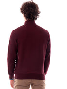 Felpa mezza zip Fred Perry bordeaux da uomo con logo ricamato, realizzata in 100% puro cotone. Questa felpa Fred Perry bordeaux ha la chiusura a mezza zip, il logo del brand ricamato sul cuore a contrasto colore, polsini e fondo elasticizzati a costine.
