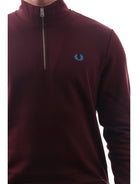 Felpa mezza zip Fred Perry bordeaux da uomo con logo ricamato M357AZ63