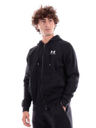 Schwarzes Herren-Sweatshirt von Under Armour. Dieses Under Armour-Sweatshirt hat eine feste, verstellbare Kapuze mit Kordelzug, einen durchgehenden zentralen Reißverschluss, zwei offene Seitentaschen, das Markenlogo auf dem Herzen sowie gerippte elastische Bündchen und Saum. Die Baumwollzusammensetzung macht dieses leichte, weiche und bequeme Sweatshirt zu einem Must-have für die Herbstzeit.
