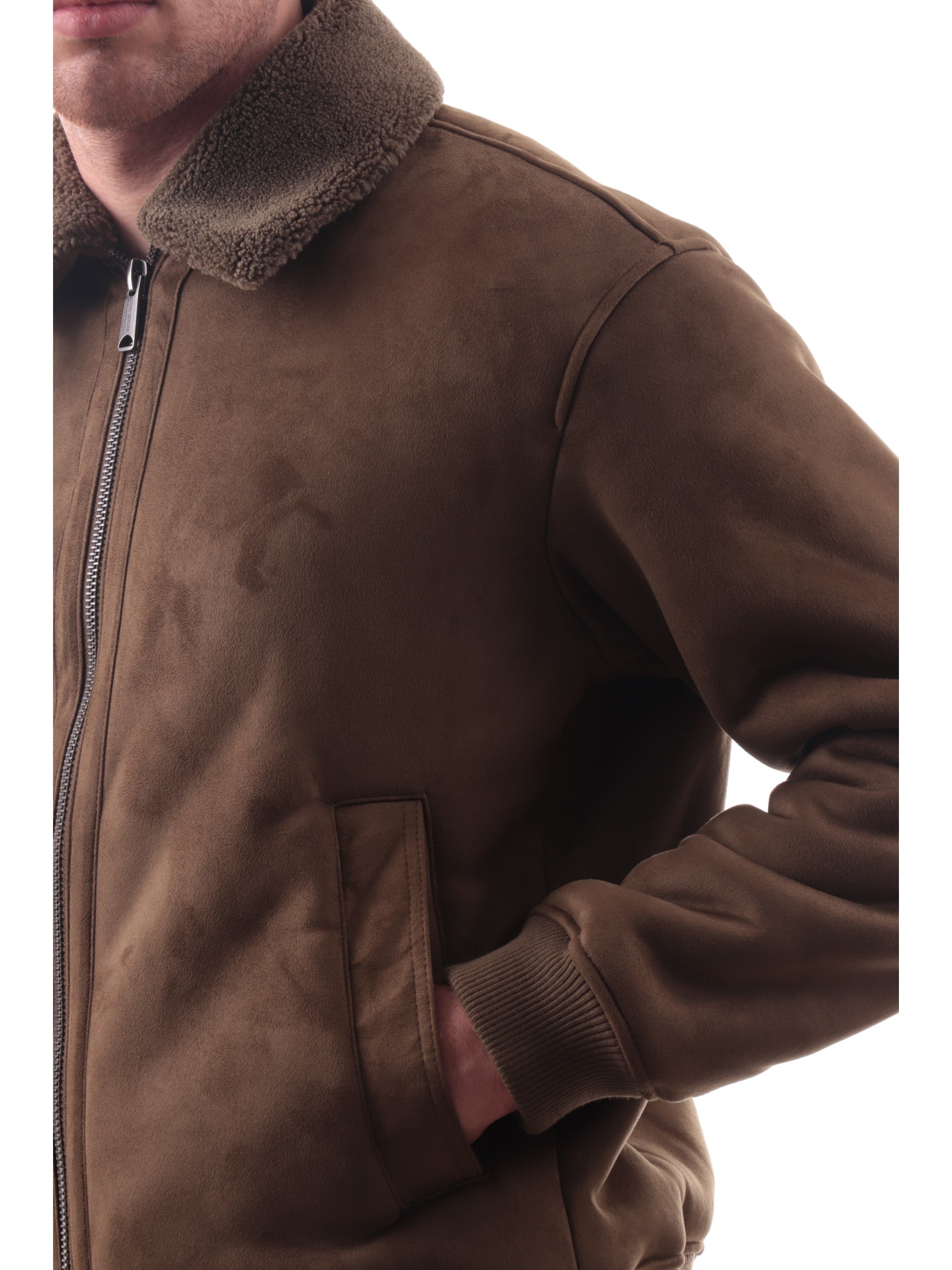 Giacca ecomontone marrone da uomo Jack Jones. Questa giacca marrone Jack Jones realizzato da un'imbottitura calda ed avvolgente al tatto è caratterizzata dalla chiusura centrale full zip, scaldacollo, due tasche laterali aperte, polsini e fondo elasticizzati a costine, all'interno di questo ecomontone troviamo il tessuto realizzato in ecoteddy, caldo ed avvolgente