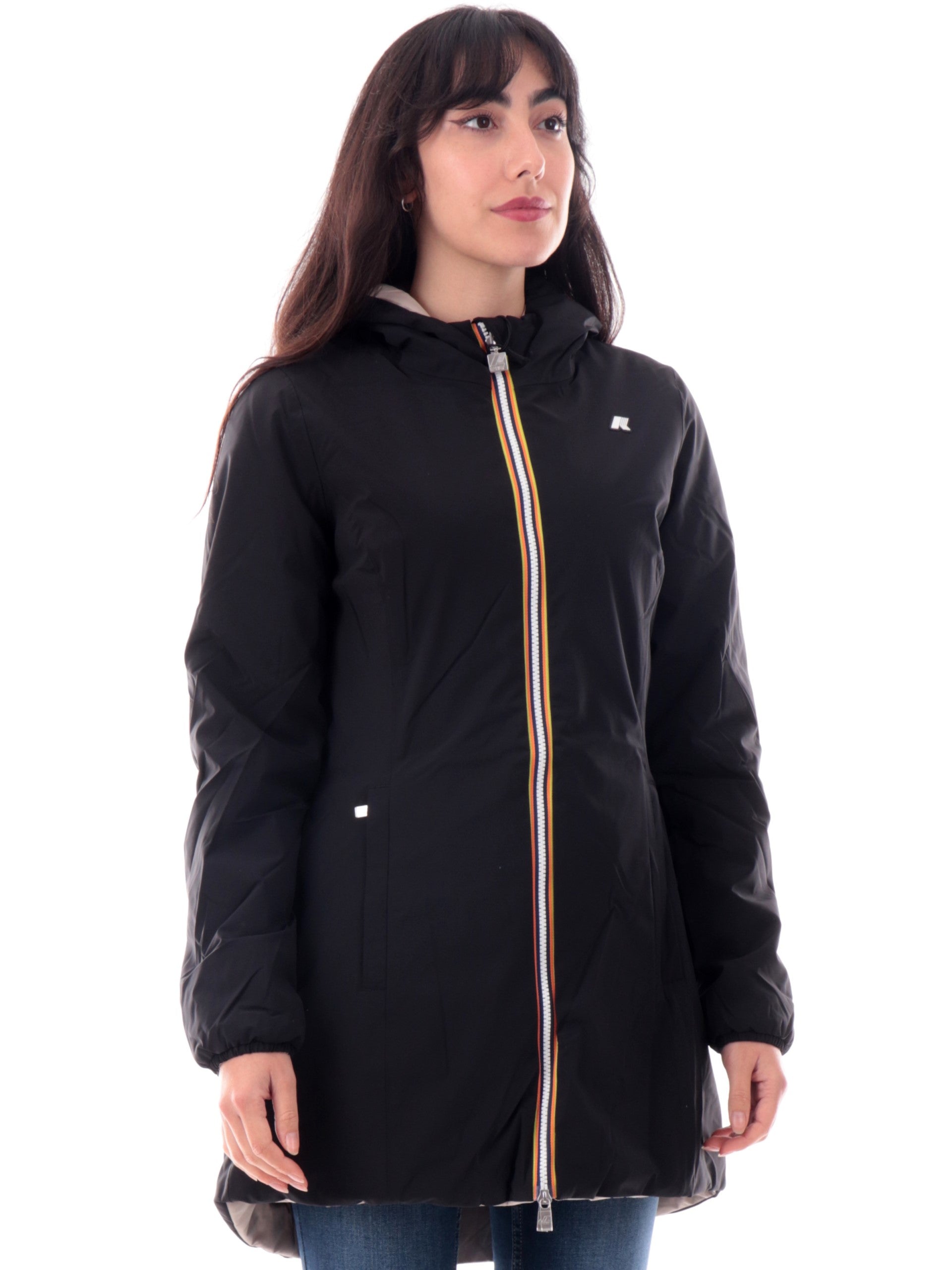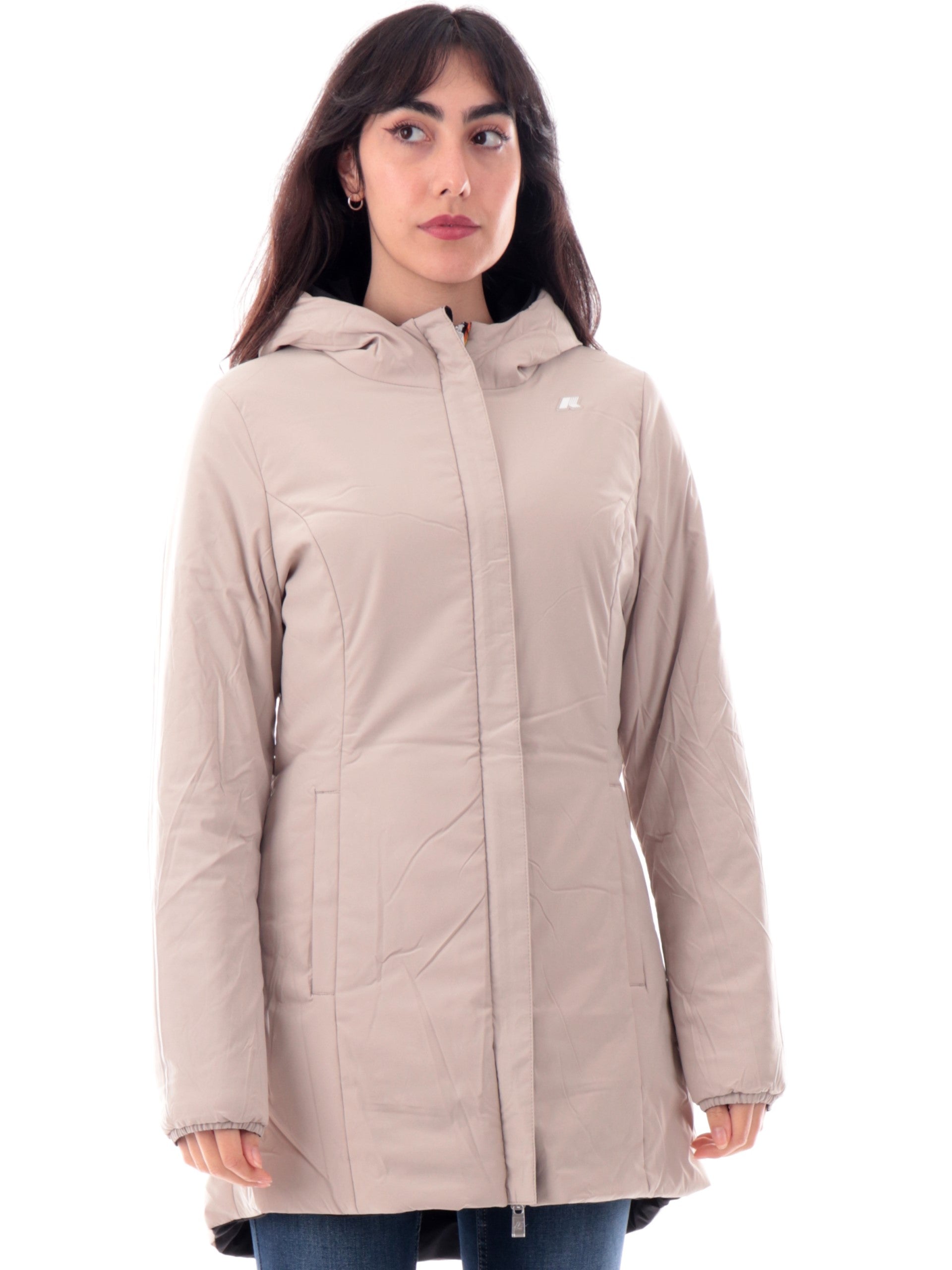 Giacca lunga K-Way reversibile beige e nero donna DENISE WARM DOUBLE K6128UWBC9