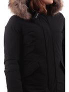 Schwarzer Damenmantel von Woolrich mit Murmasky-Fell 0652FRUT3128
