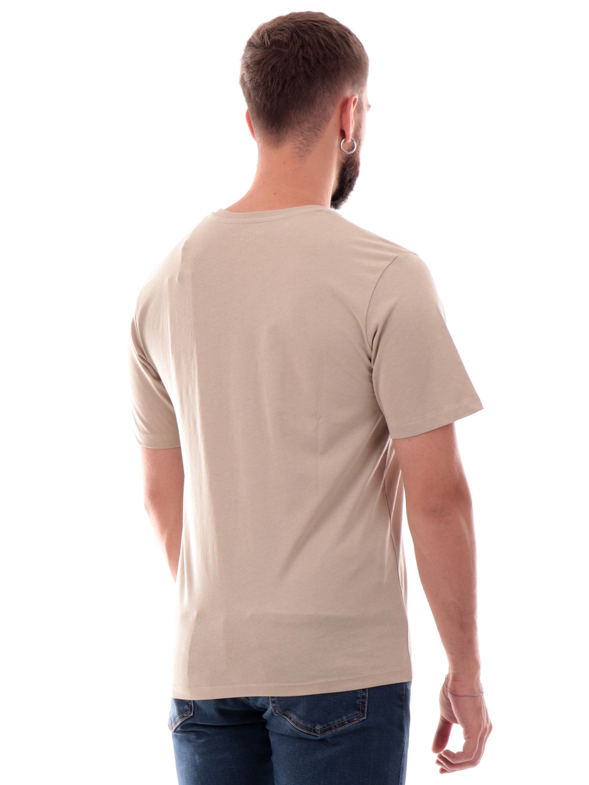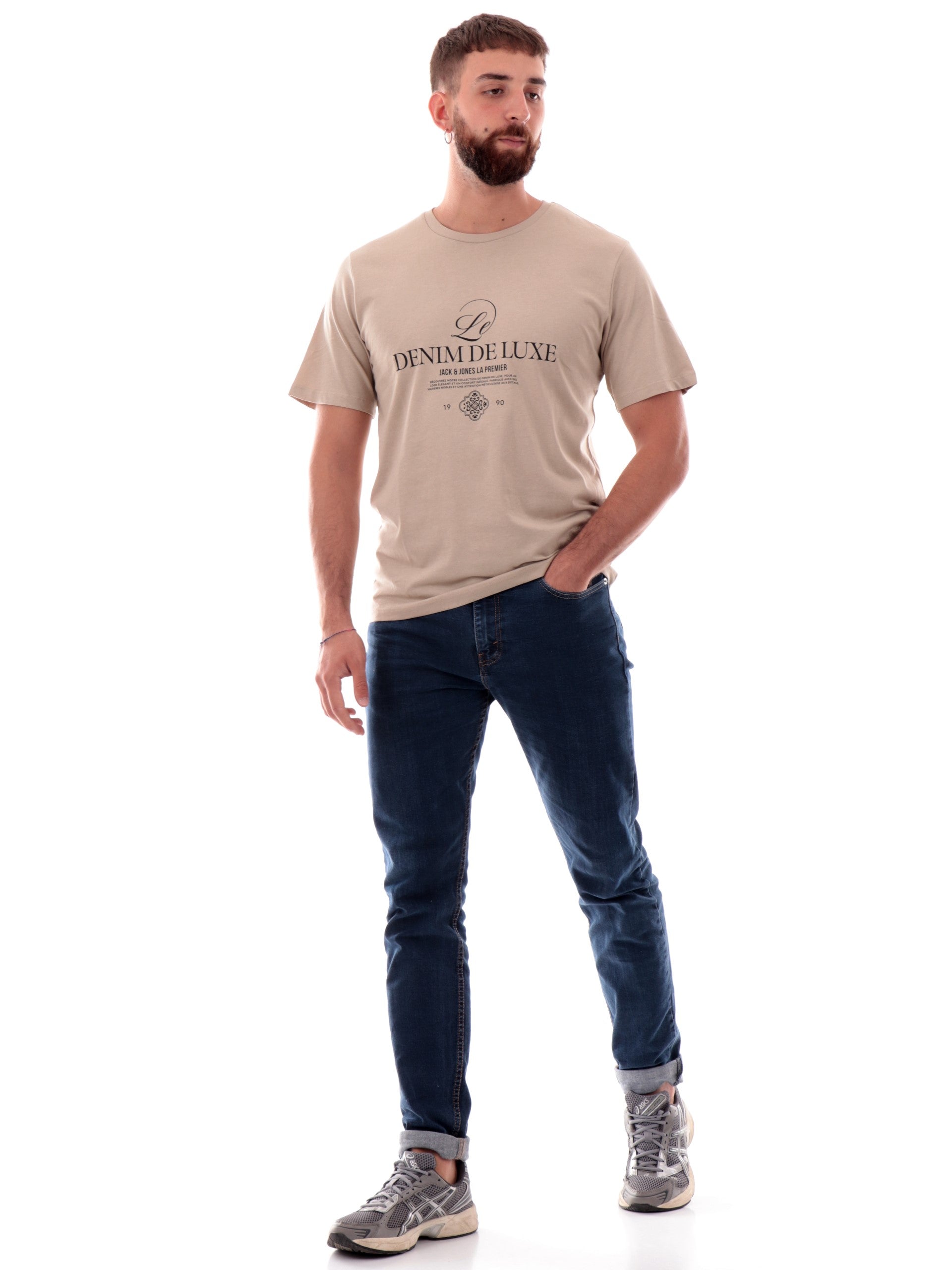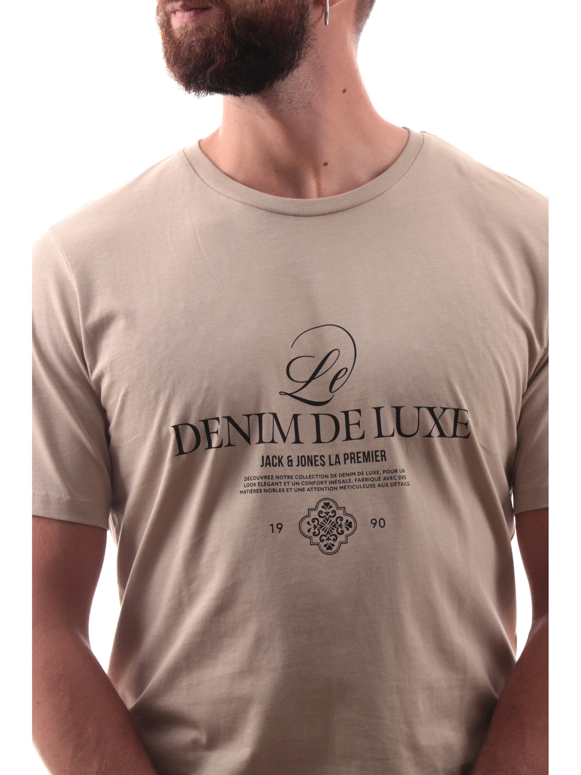Maglia Jack Jones beige girocollo da uomo maxi stampa deluxe 12282249. Questa t-shirt Jack Jones girocollo ha le maniche corte e la maxi stampa deluxe sul davanti.