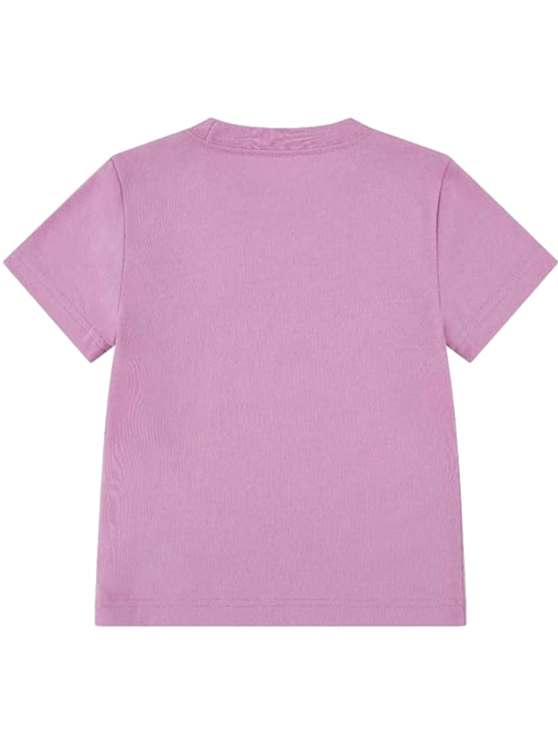 Maglia Nike rosa da bambina logo Nike ricamato 36C545, realizzata in cotone. Questa t-shirt Nike rosa girocollo ha le maniche corte e il logo Nike ricamato lato cuore.