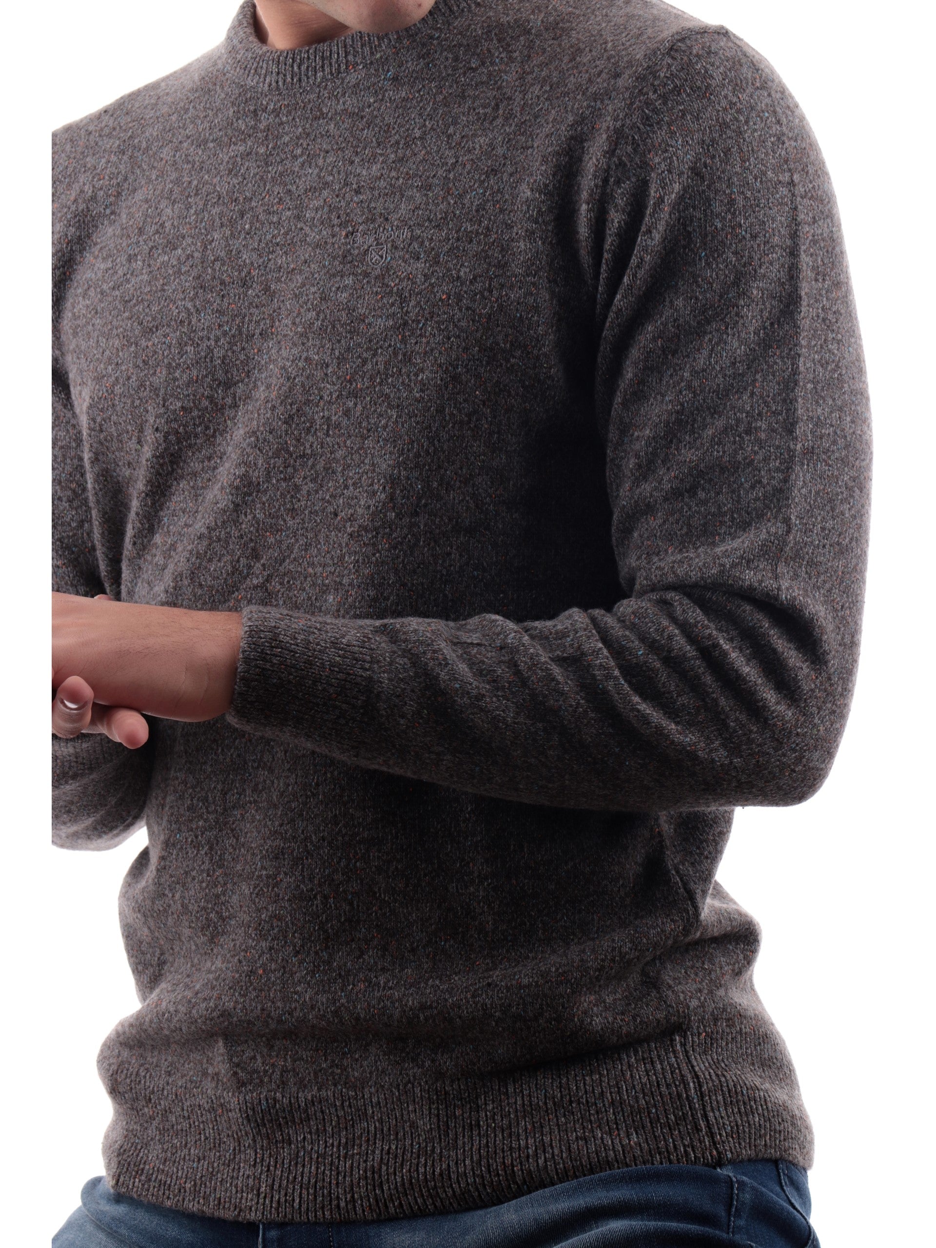 Maglione Barbour da uomo grigio MKN0844 girocollo. Questo pullover Barbour grigio a tinta unita ha una vestibilità regolare, polsini e polsino di fondo a costine e il logo del brand ricamato tono sutono dul davanti lato sinistro. Questo maglione Borbour da uomo dal taglio classico e dallo stile casual si adatta a tutti i contesti e ti farà sempre sentire a tuo agio