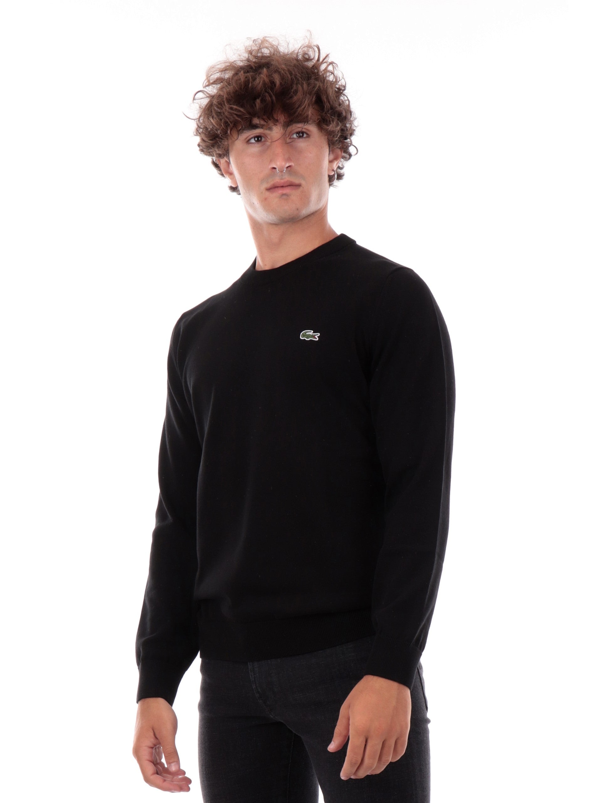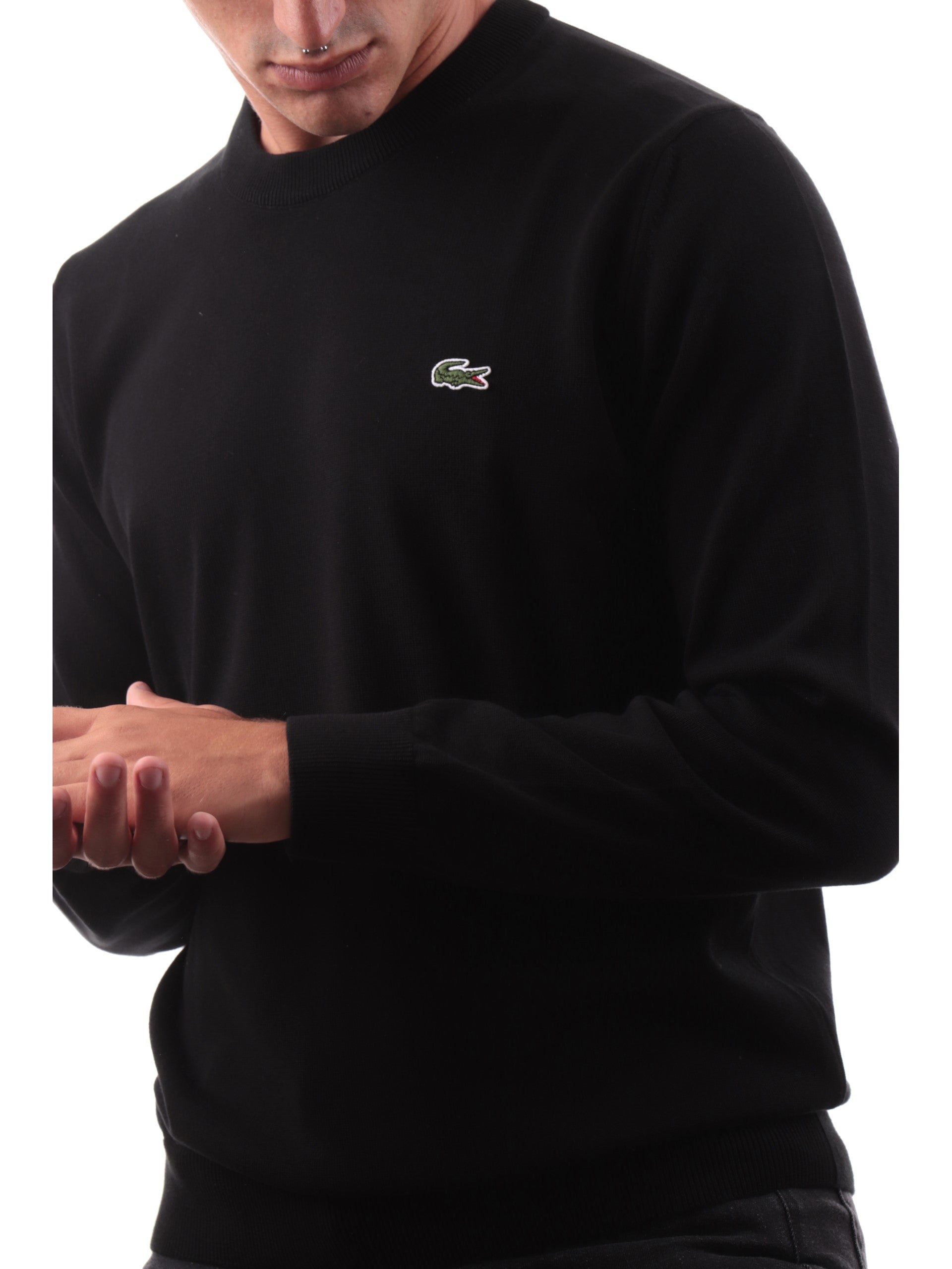 Maglione Lacoste in morbido organic cotton a tinta unita di colore nero. Pullover da uomo dalla vestibiltà regolare, presenta girocollo, polsini e fascia di fondo rifiniti a coste. Il patch con il logo si trova sul petto lato cuore. Questo iconico pullover Lacoste modello AH1985 si può indossare in ogni occasione con una t-shirt o con una camicia a seconda delle vostre esigenze.
