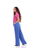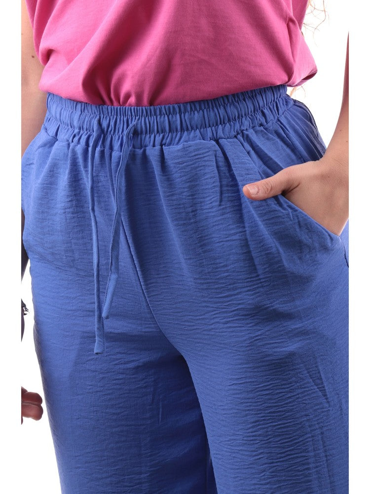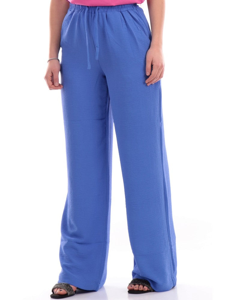 Hellblaue Palazzo-Hose für Damen von Tiffosi mit elastischem Bund und Kordelzug zum Verstellen. Diese Palazzo-Hose von Tiffosi besteht aus weichem Slip-Stoff, der eine elegante, weiche und feminine Linie verleiht.