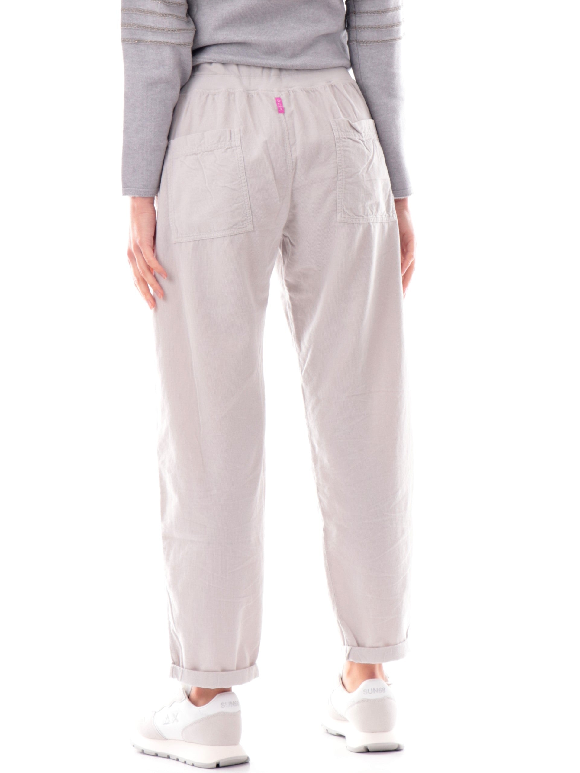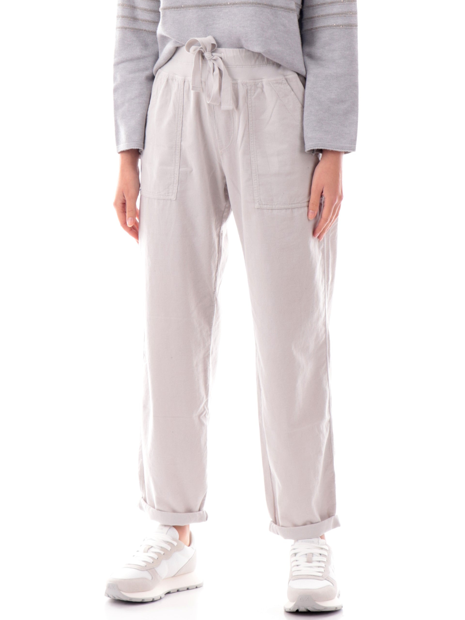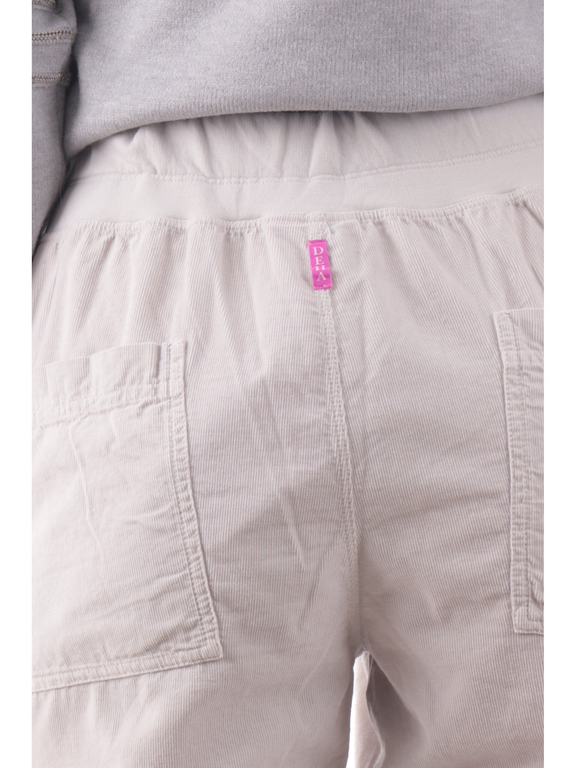 Pantaloni in velluto a costine grigio Deha da donna. Questi pantaloni Deha grigi in velluto a costine realizzati in cotone hanno la banda elastica sul punto vita regolabile con laccetti, due tasche laterali aperte, fondo regolare con risvolto e due tasche aperte dietro. Questo capo è Must-have comodo e adatto per un outfit da tutti i giorni