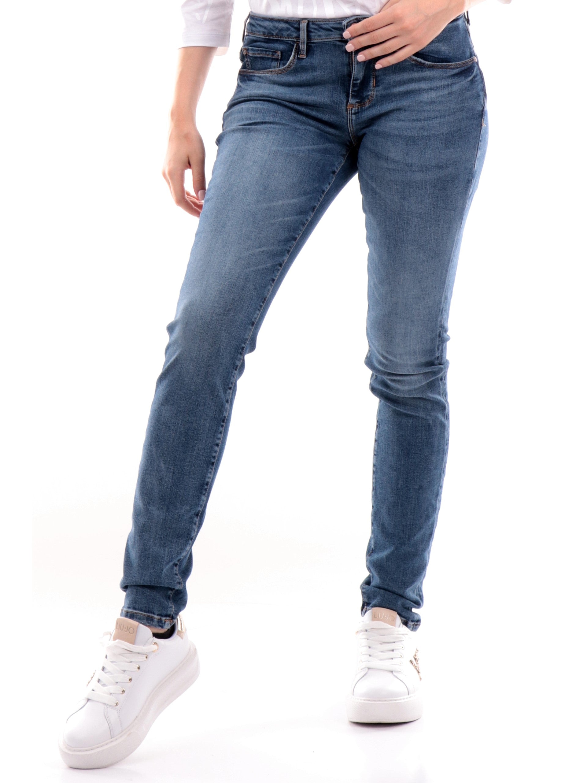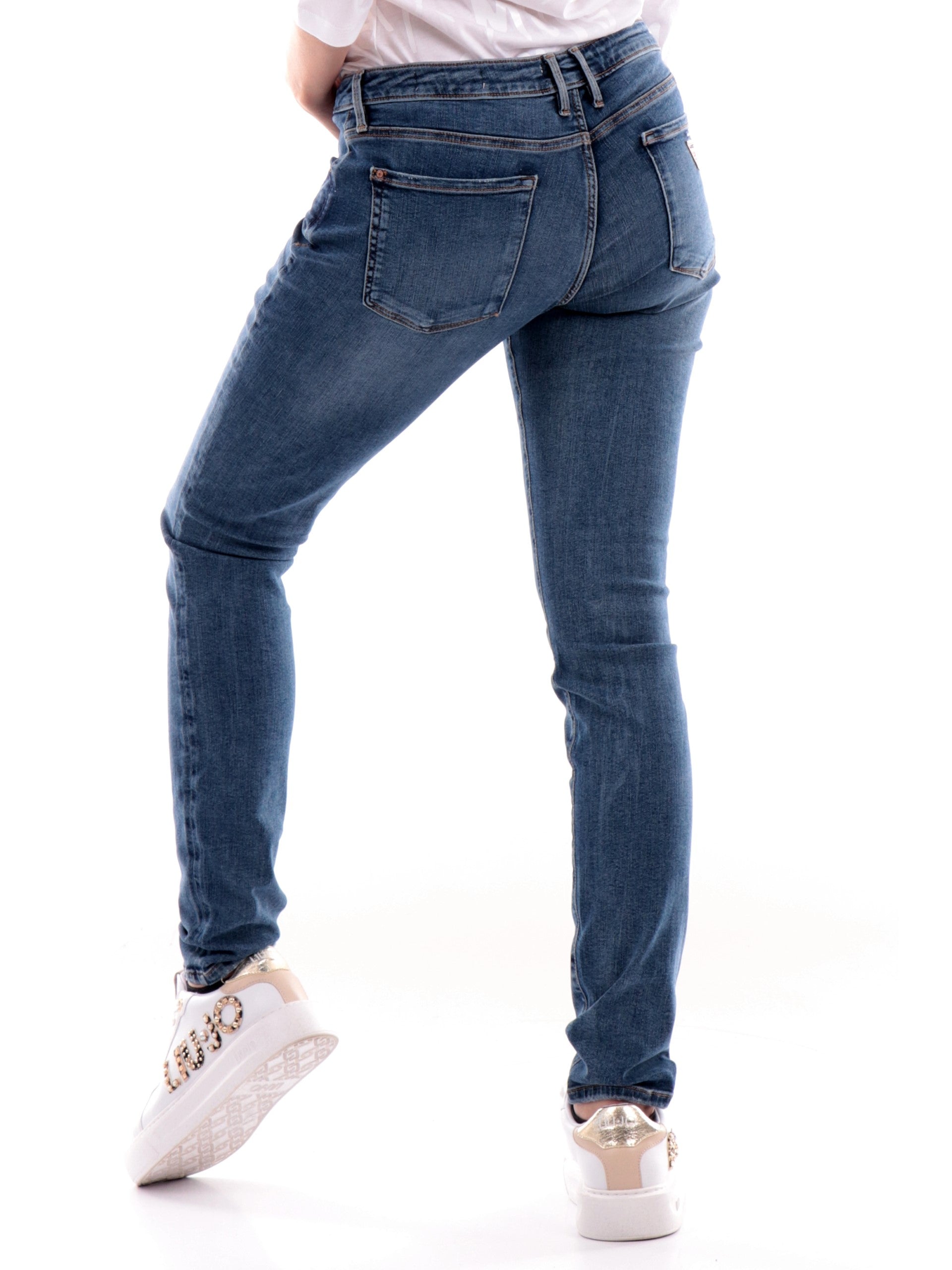 Pantaloni jeans Guess da donna Annette W2YA99D4Q02. Questi pantaloni jeans Guess hanno la chiusura con bottone più zip, due tasche laterali di cui la destra con taschino, due tasche posteriori a filodi cui la destra con patch del brand ricamato, la vestibilità Skinny ed il fondo regolare.