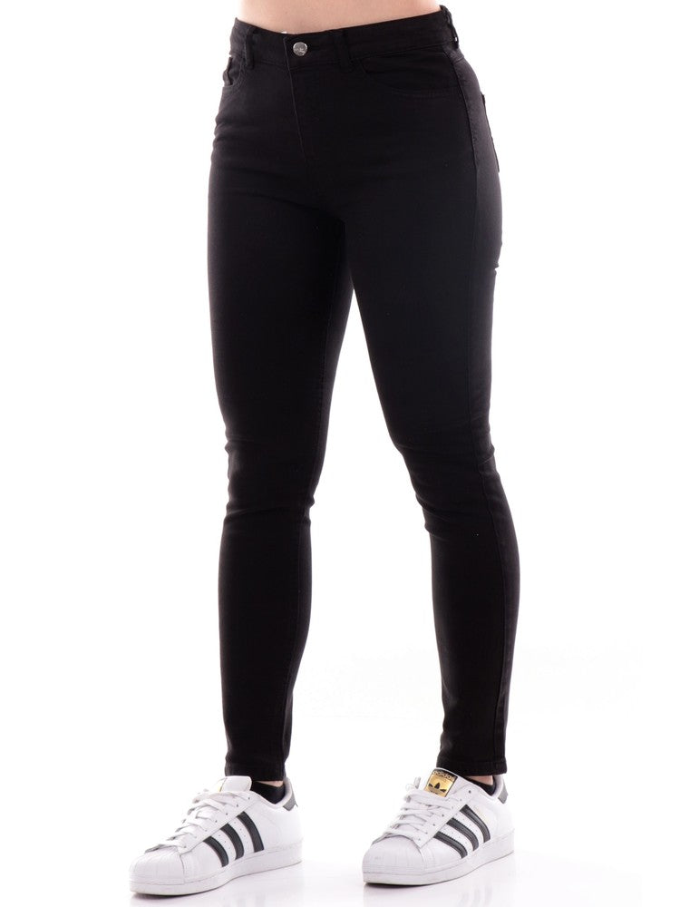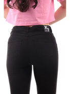 Schwarze Damen-Jeanshose von XT Studio, Skinny-Modell SV1001W61501, aus weicher Baumwolle. Diese schwarze XT Studio-Hose hat ein Gummiband in der Taille, einen Knopf- und Reißverschluss, zwei offene Seitentaschen (eine davon mit Tasche), Möglichkeit zum Tragen eines Gürtels, zwei offene Gesäßtaschen und einen normalen Hosenbund.