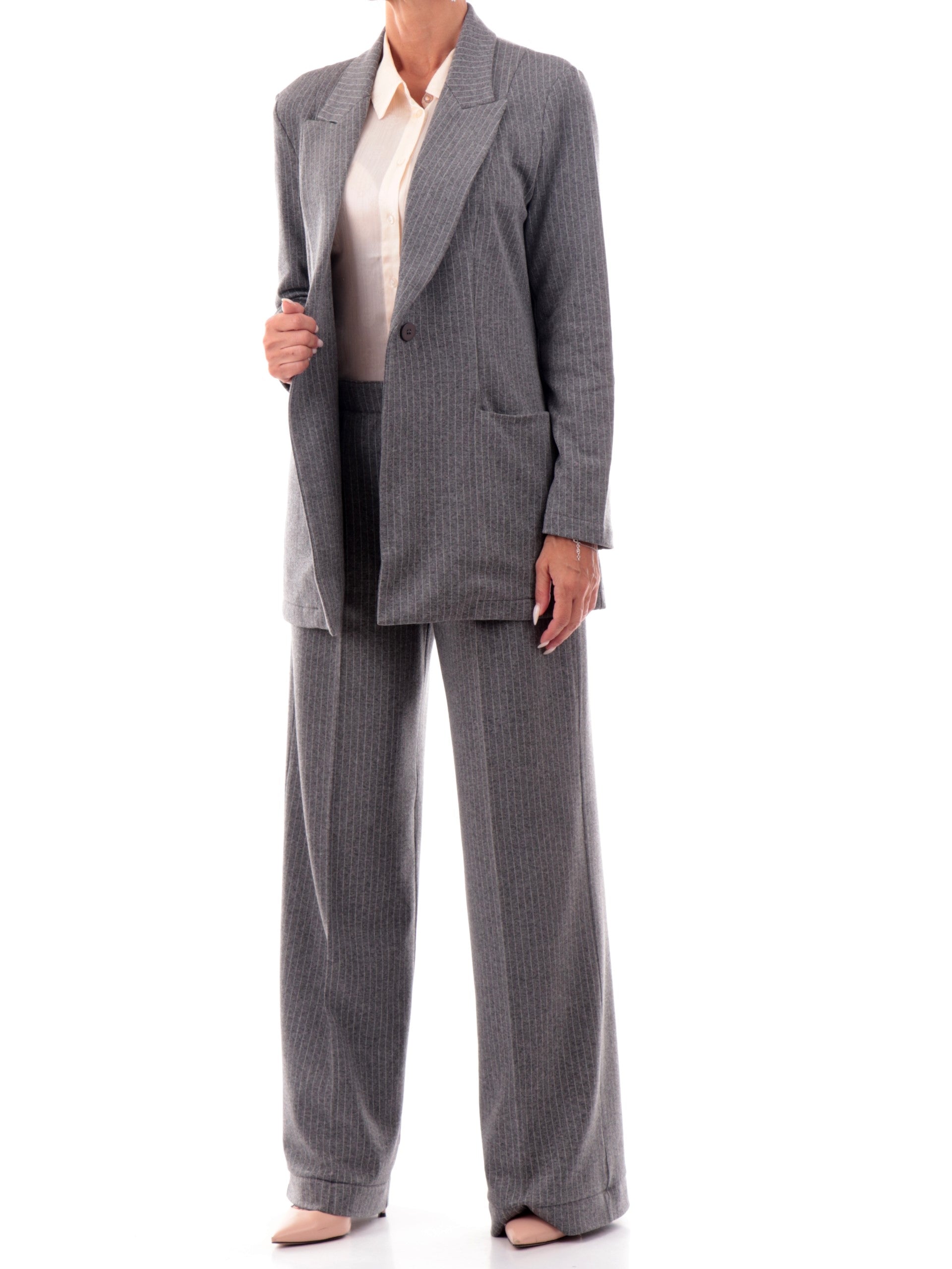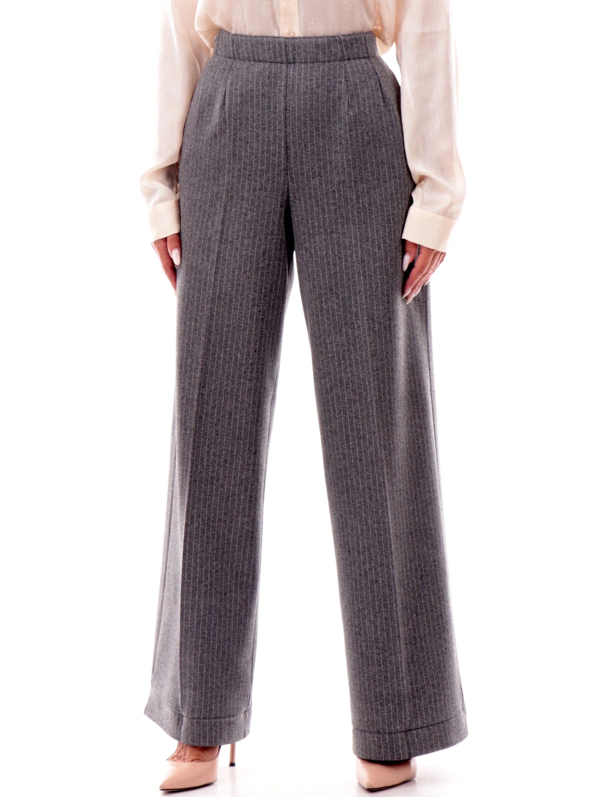 Pantaloni Ragno Palazzo grigi gessati da donna Wide DR48PE