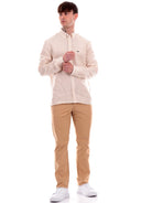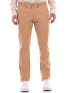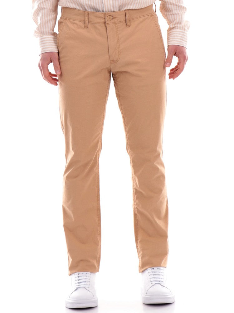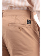 Braune Timberland Herrenhose Chino TB0A5TU, aus weicher Baumwolle. Diese braune Timberland-Hose hat einen Logo-Knopf und Reißverschluss, zwei offene Seitentaschen mit schrägen Schnitten, zwei Leistentaschen hinten und einen normalen Saum.