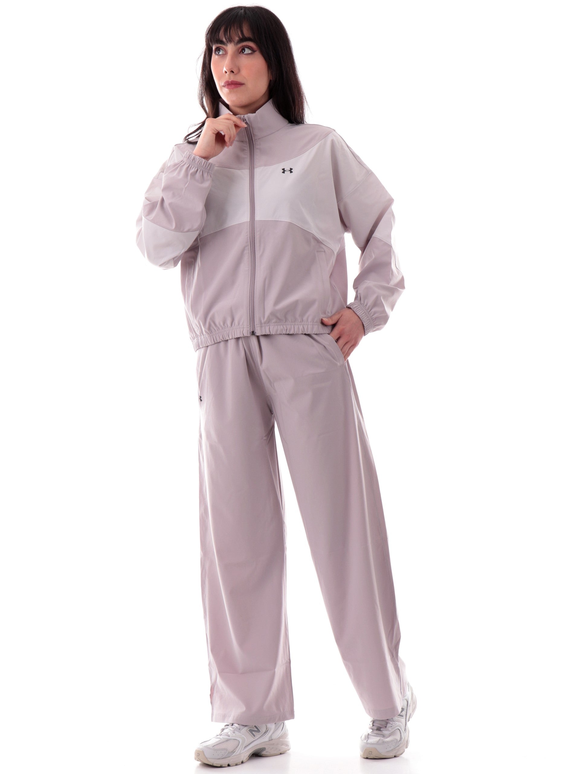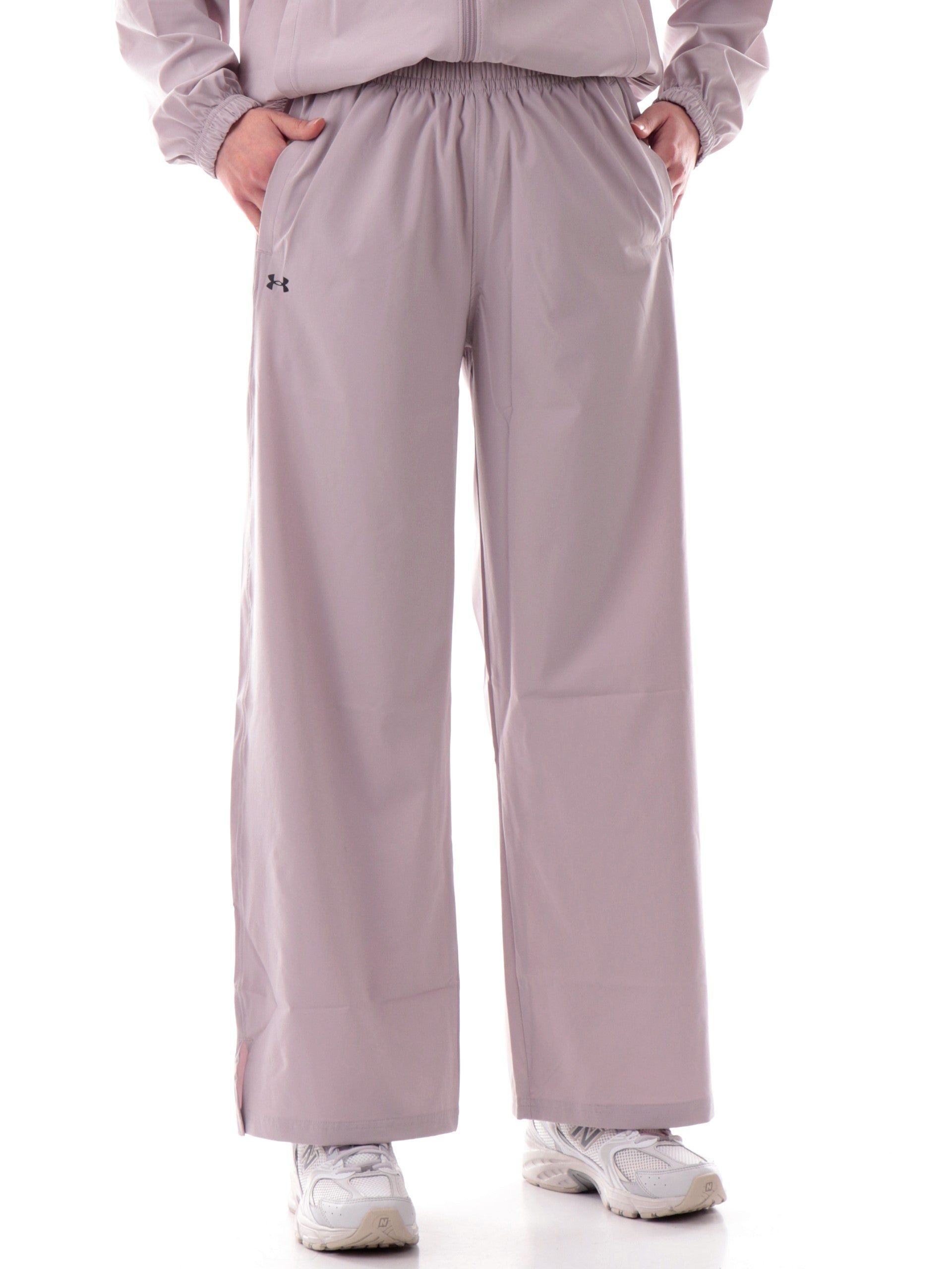 Pantaloni tuta Under Armour palazzo rosa da donna UA Rival Wide Leg 13864530, realizzati in tessuto tecnico. Questi pantaloni sport donna Under Armour hanno la banda elastica sul punto vita regolabile con laccetti interni, due tasche laterali aperte e il logo Under Armour stampato sul lato destro a contrasto colore.