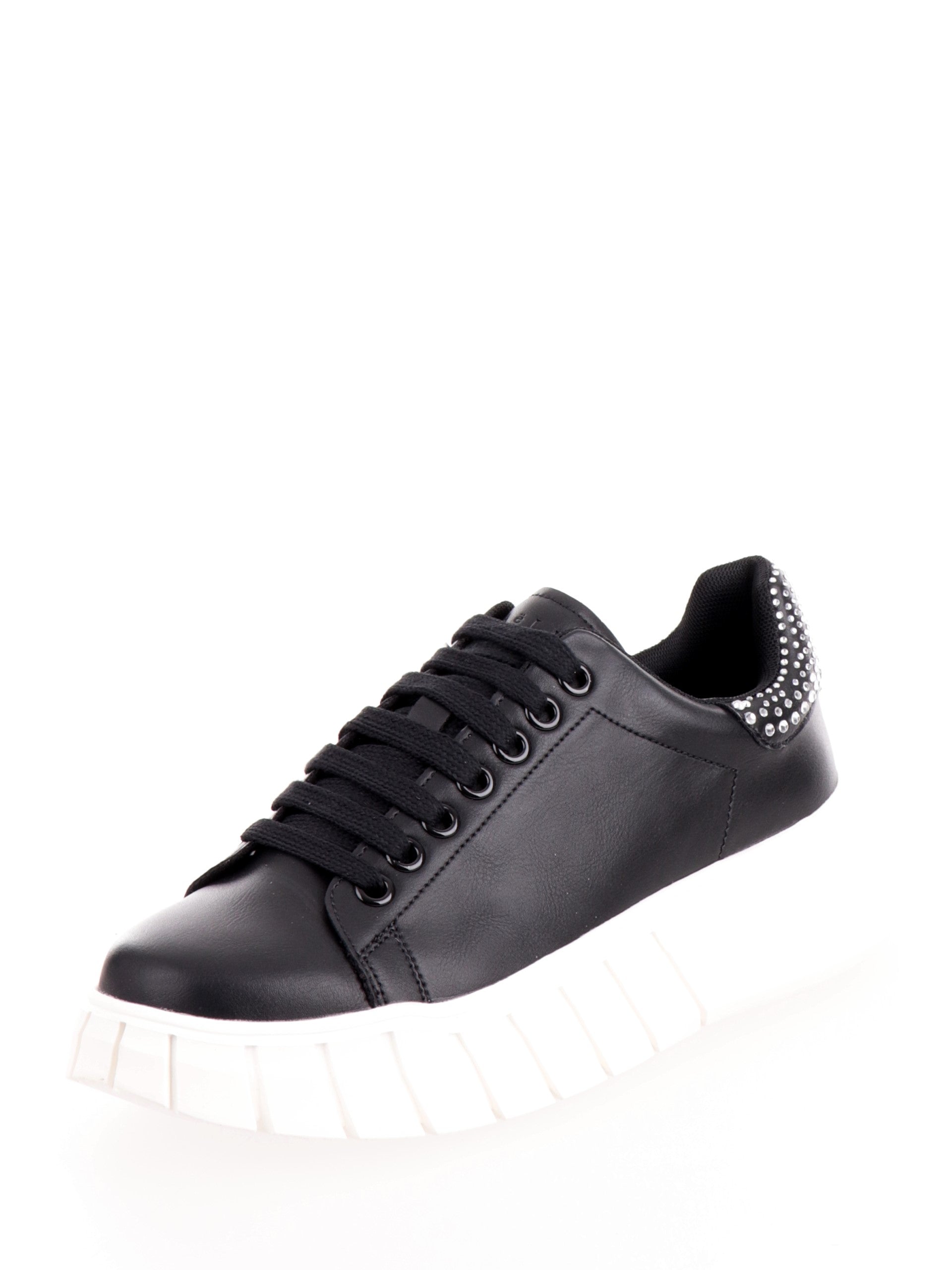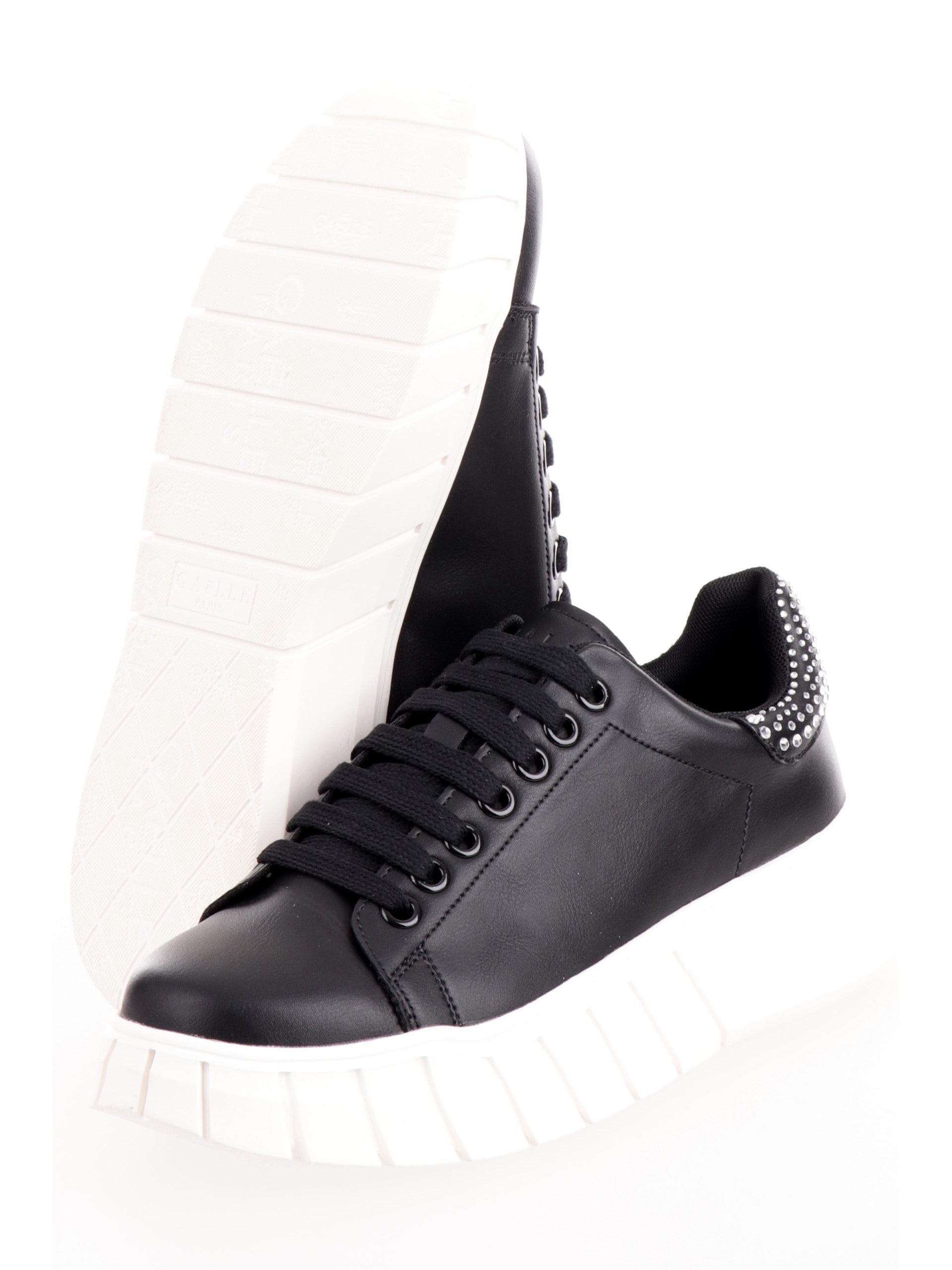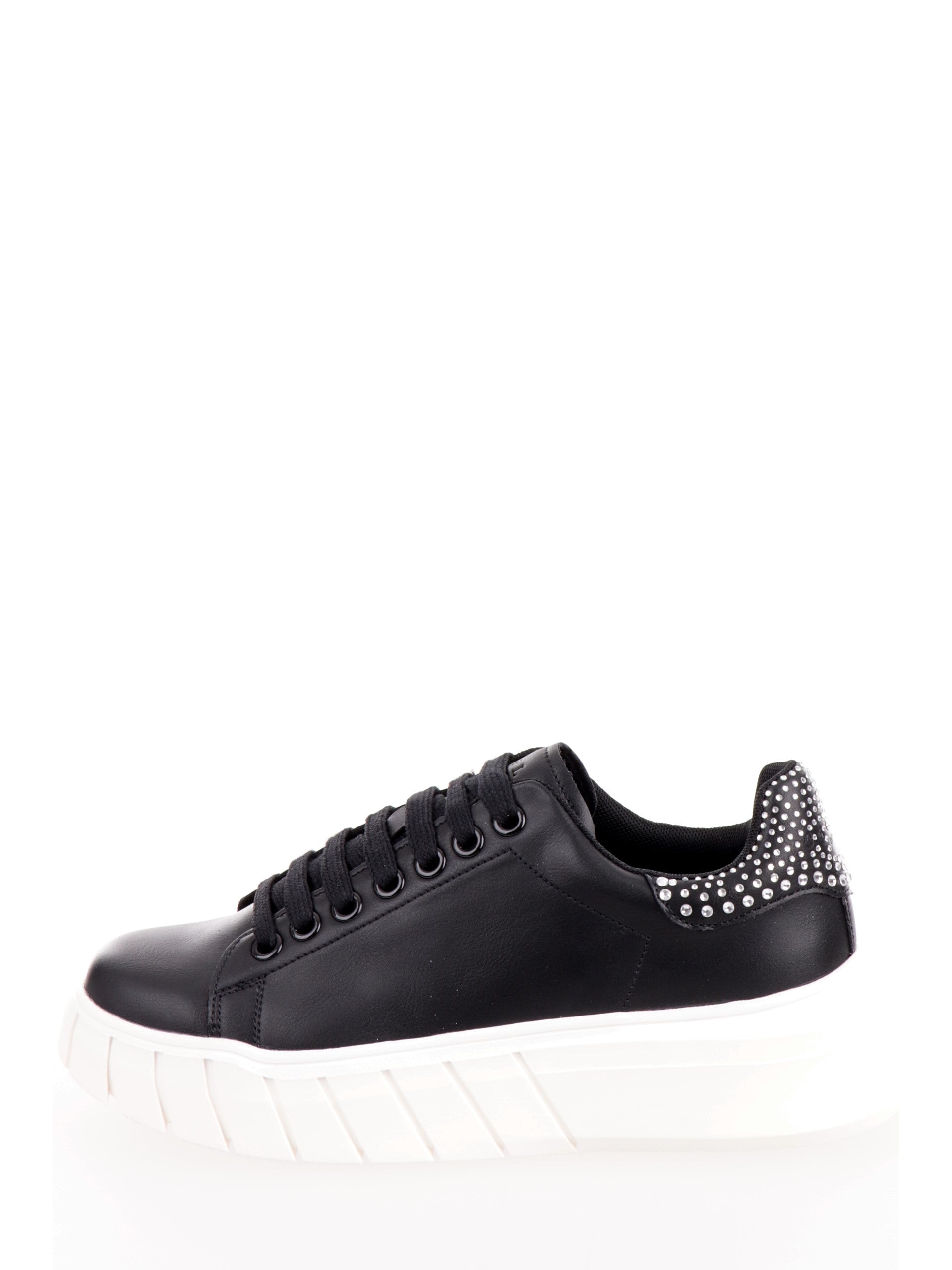 Scarpe Gaelle nere da donna Sneakers Addict con strass sulla zona tallonare. Queste sneakers Gaelle nere hanno la tomaia in ecopelle, la suola in gomma e la sottosuola con texture logata a croce.