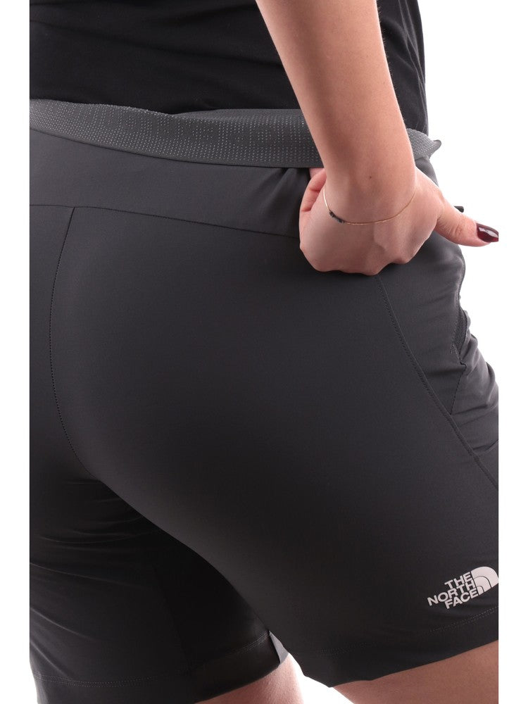 Schwarze Damenshorts The North Face Felik Slim NF0A87HY aus atmungsaktivem technischem Stoff. Diese schwarzen North Face-Shorts haben ein Gummiband in der Taille, einen Knopf- und Reißverschluss, zwei Seitentaschen mit Reißverschlüssen und das Markenlogo in einer Kontrastfarbe auf der Unterseite.