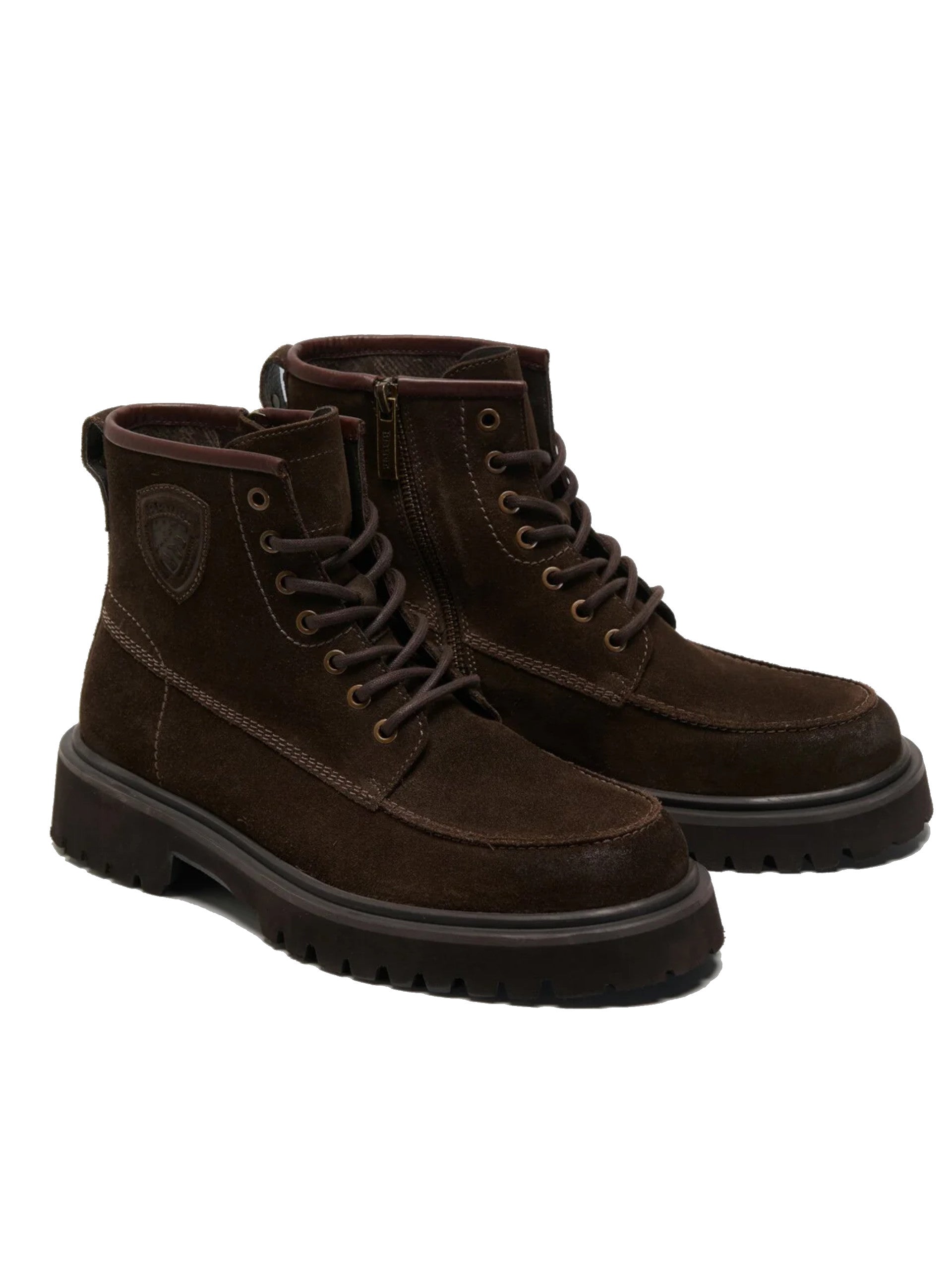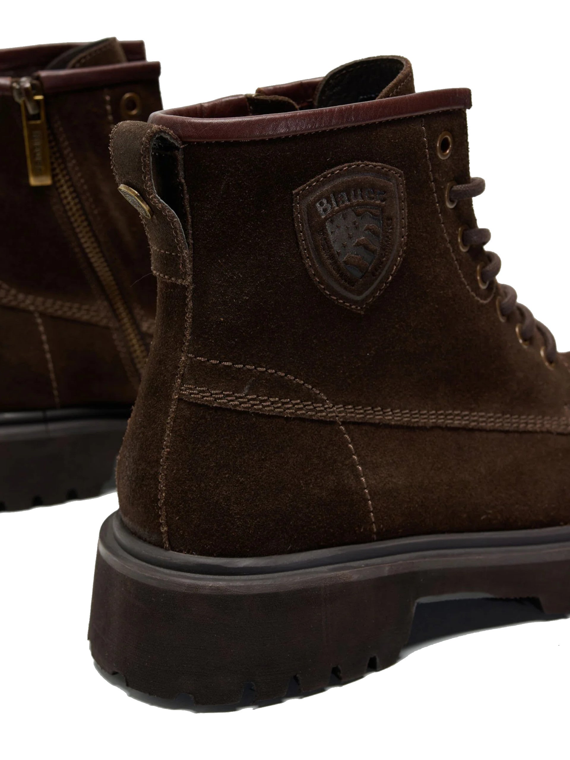 Stivali Blauer marroni uomo BUXTON. Queste scarpe Blauer marroni hanno la tomaia realizzzata in pelle e la suola in gomma, sono caratterizzate dalla classica chisura a lacci e la chiusura laterale azip, sul lato il logo Blauer stampato tono su tono
