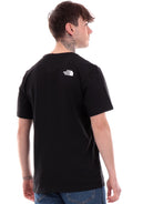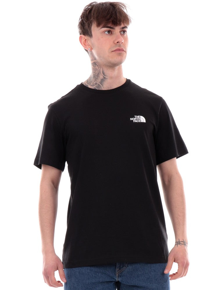 Schwarzes Herren-T-Shirt The North Face Simple Dome NF0A87NG aus weicher Baumwolle. Dieser schwarze Pullover mit Rundhalsausschnitt von North Face hat kurze Ärmel, einen regulären Saum und das Markenlogo auf dem Herzen in einer Kontrastfarbe.