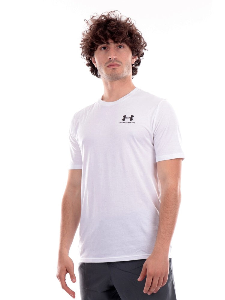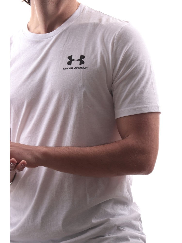 Weißes Kurzarm-T-Shirt für Herren von Under Armour. Dieses weiße Under Armour T-Shirt aus leichtem und atmungsaktivem Material ist für alle Jahreszeiten und Anlässe geeignet. Auf diesem UnderArmour-T-Shirt ist vorne links und oben in der Mitte des Rückens ein doppeltes Logo in Schwarz aufgedruckt.
