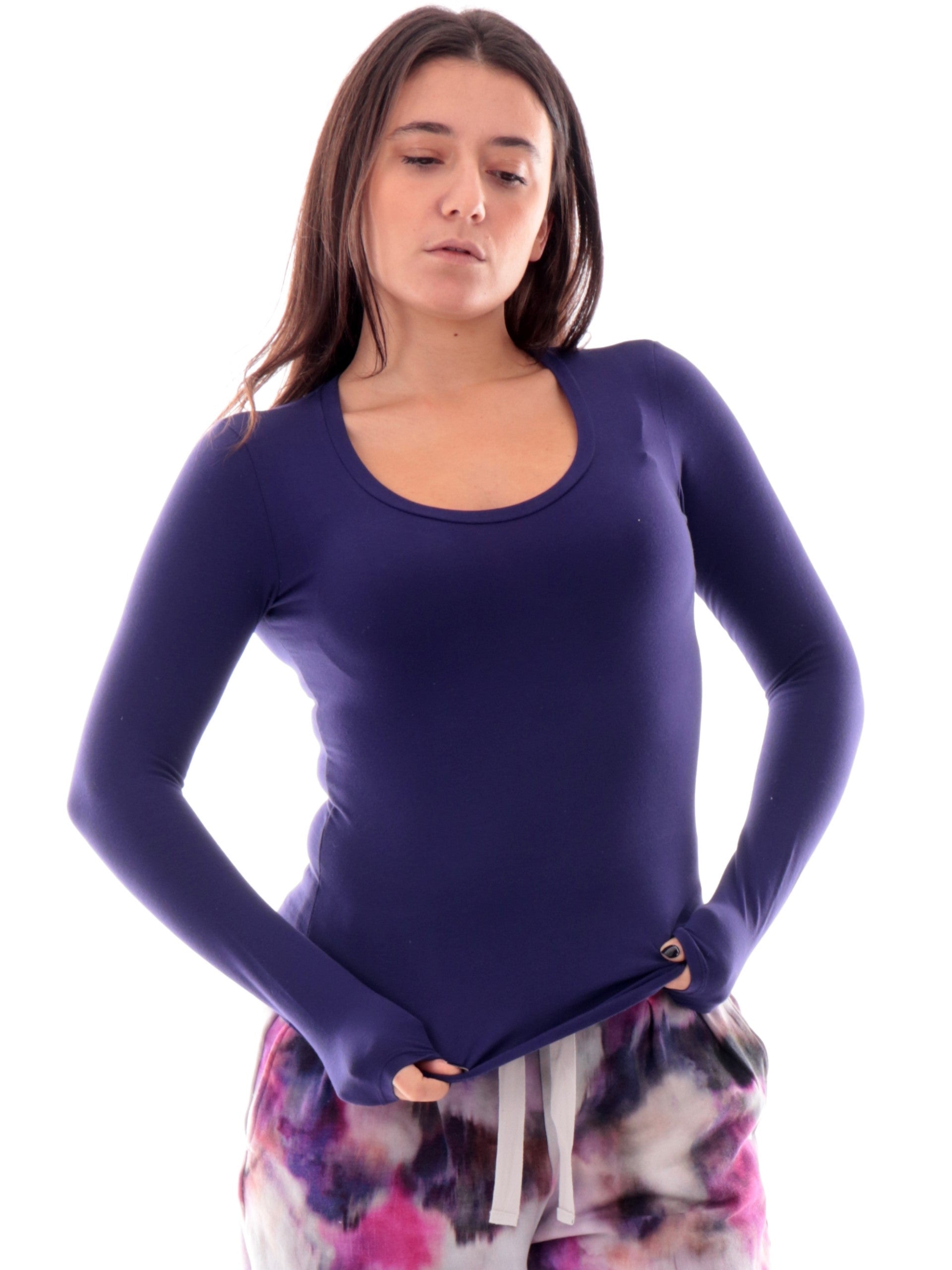 T-shirt viola manica lunga Deha. Questa T-shirt viola deha a girocollo realizzata in cotone la vestibilità slim ed è perfetta su qualsiasi outfit
