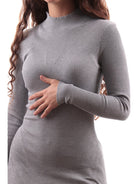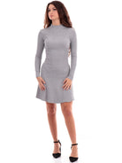 Graues XT-Damenkleid Mini Dress WD5005K41601, aus weicher gerippter Viskose. Dieses graue XT-Damenkleid hat einen Stehkragen, lange Ärmel, eine elastische Taille und einen ausgestellten Saum.