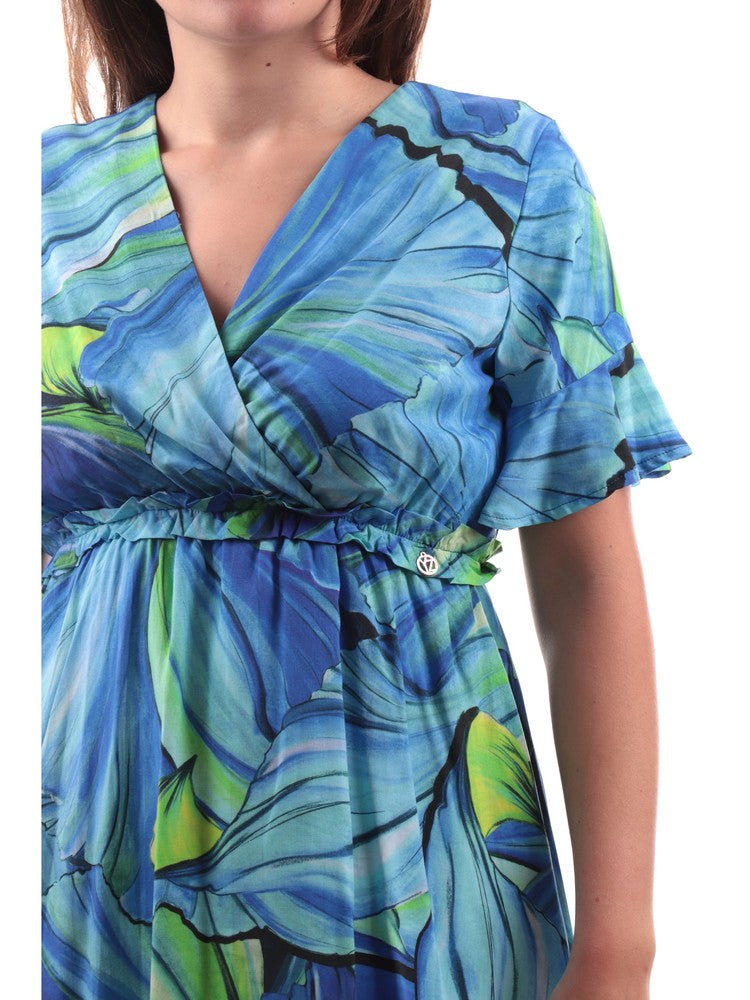 Yes Zee blaues Kleid mit V-Ausschnitt für Damen mit Blumenmuster A252CI002