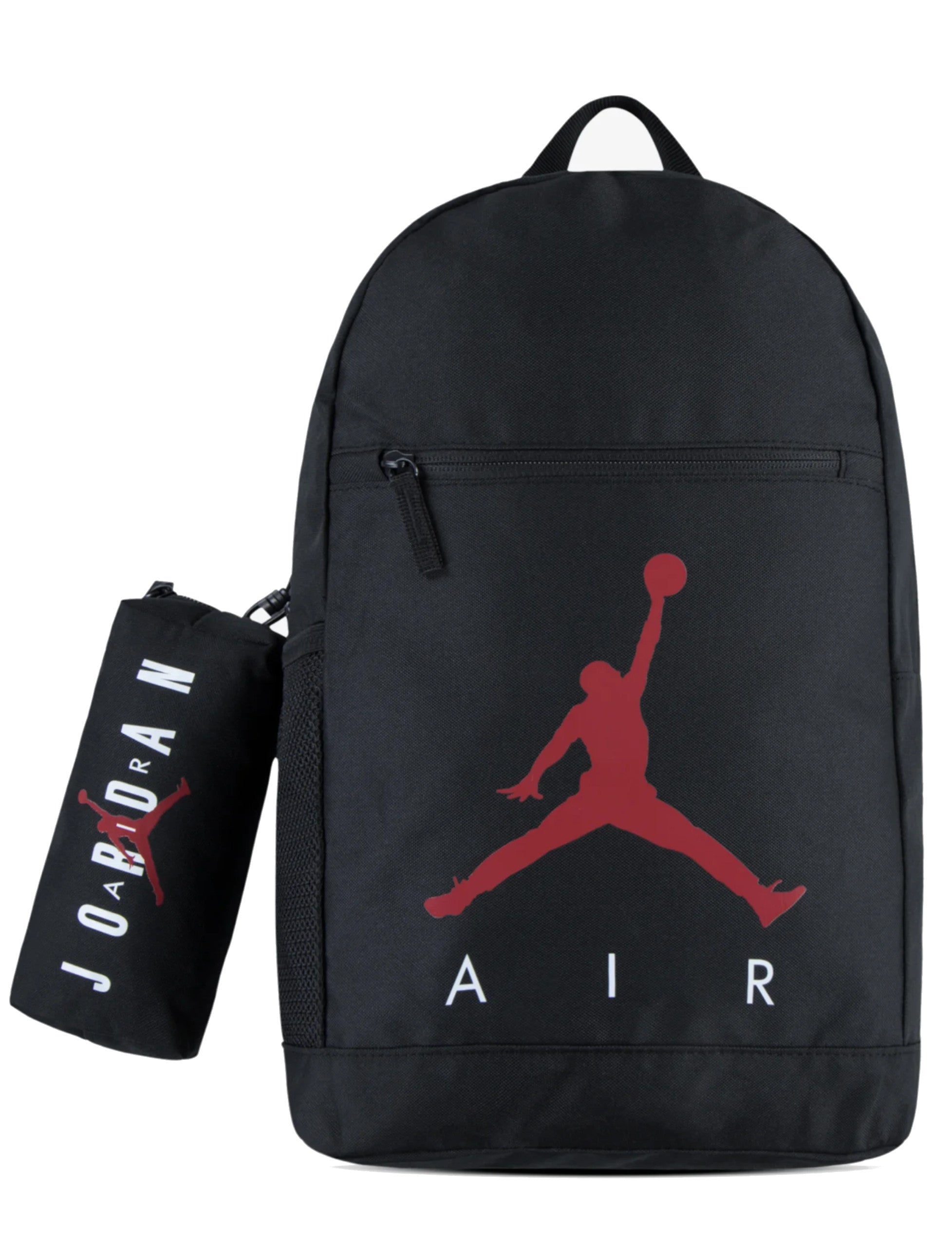 Zaino Jordan nero caratterizzato da logo Jumpman rosso stampato sul davanti, tasca laterale a rete e una tasca frontale. Il vano principale è ampio e spazioso per riporre tutto ciò che ti occorre.