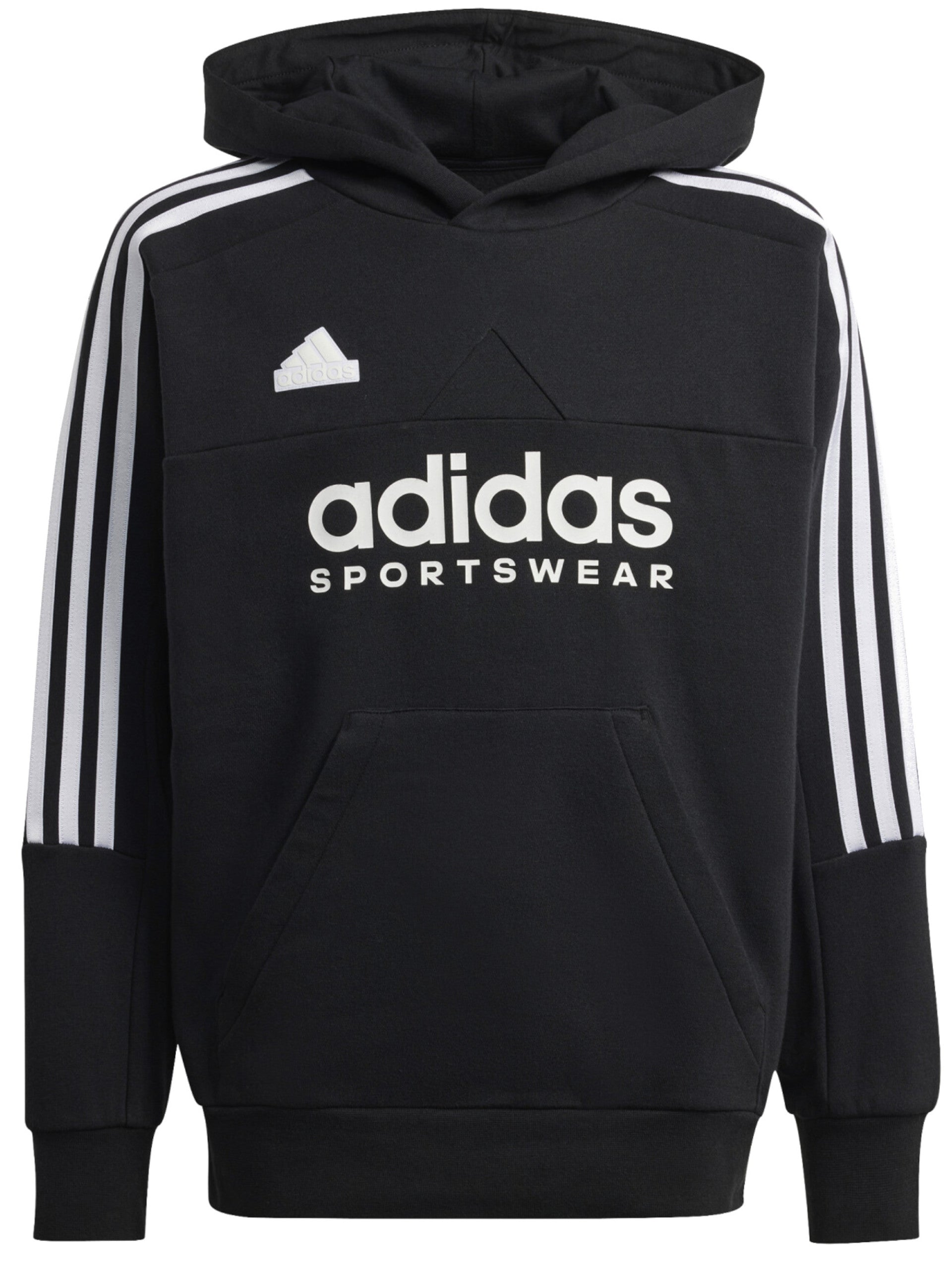 Felpa Adidas nera da donna con cappuccio e logo ricamato
