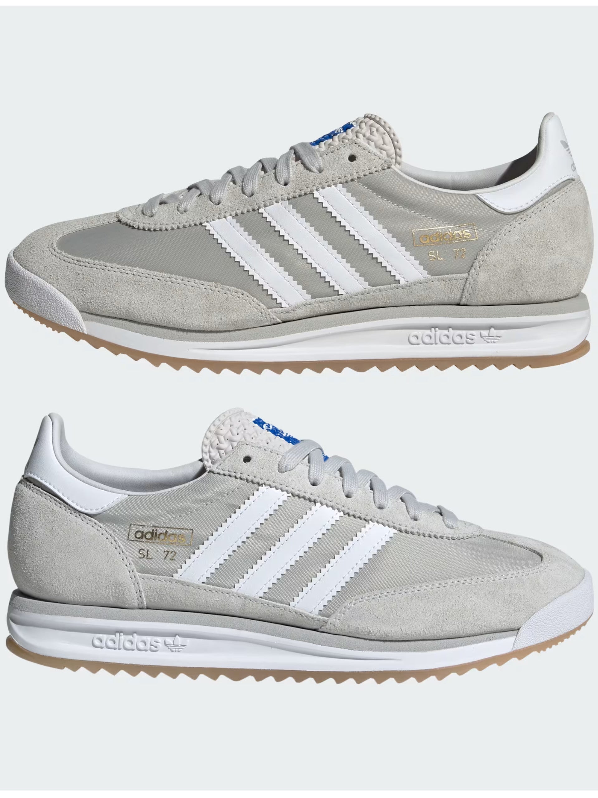 Scarpe Adidas SL 72 RS grigie JI1282. Queste sneakers Adidas SL 72 hanno la tomaia in mesh con inserti suede, la suola in gomma e la soletta logata rimovibile. Sul davanti di queste SL 72 troviamo laclassica chiusura con lacci, le 3Stripes ambo i lati e il lettering SL 72 oro.