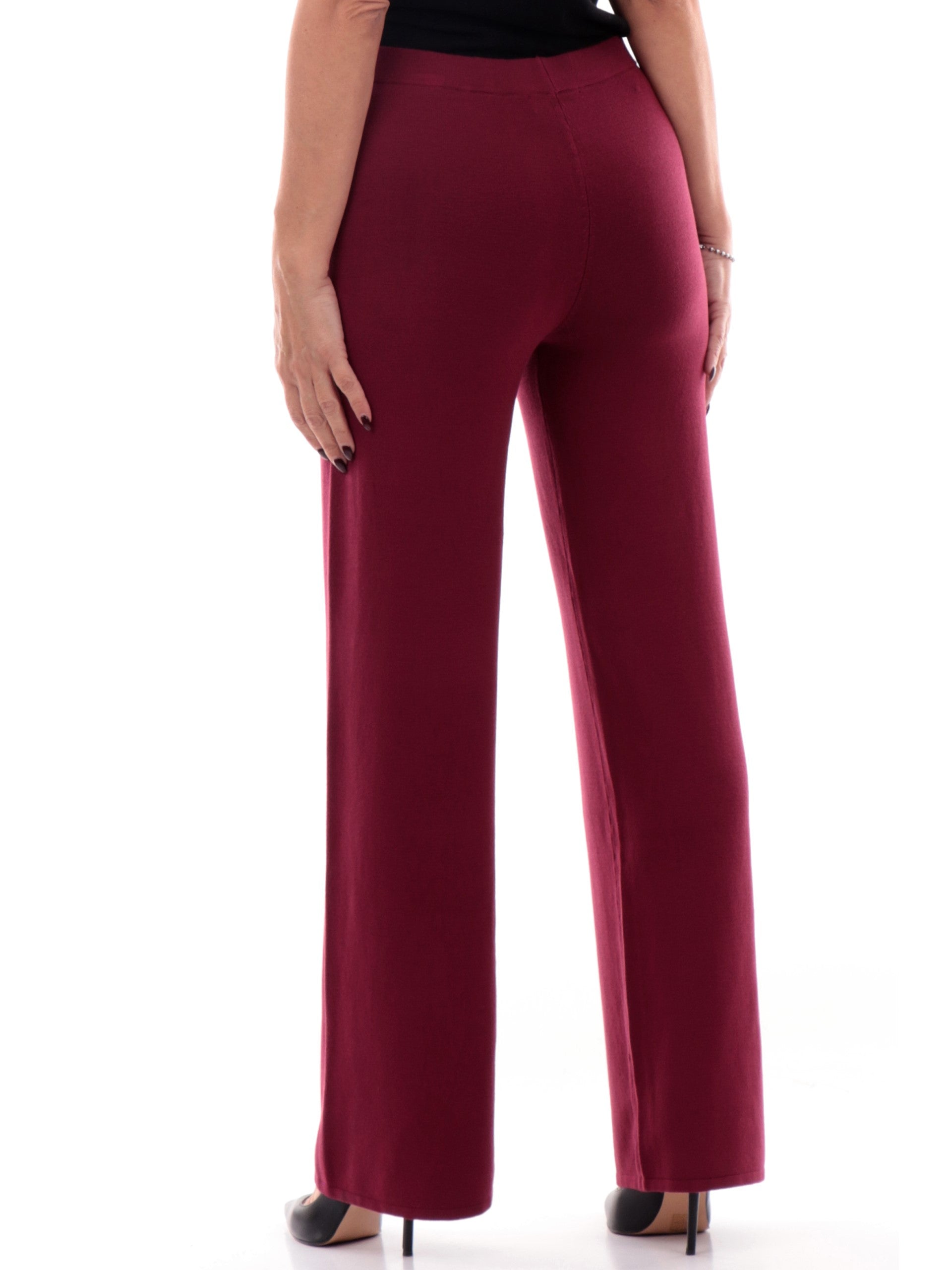 Pantaloni Anis in maglia fucsia da donna palazzo 245W6015, realizzati in viscosa. Questi pantaloni palazzo Anis fuxia hanno la banda elastica sul punto vita e il fondo a zampa.