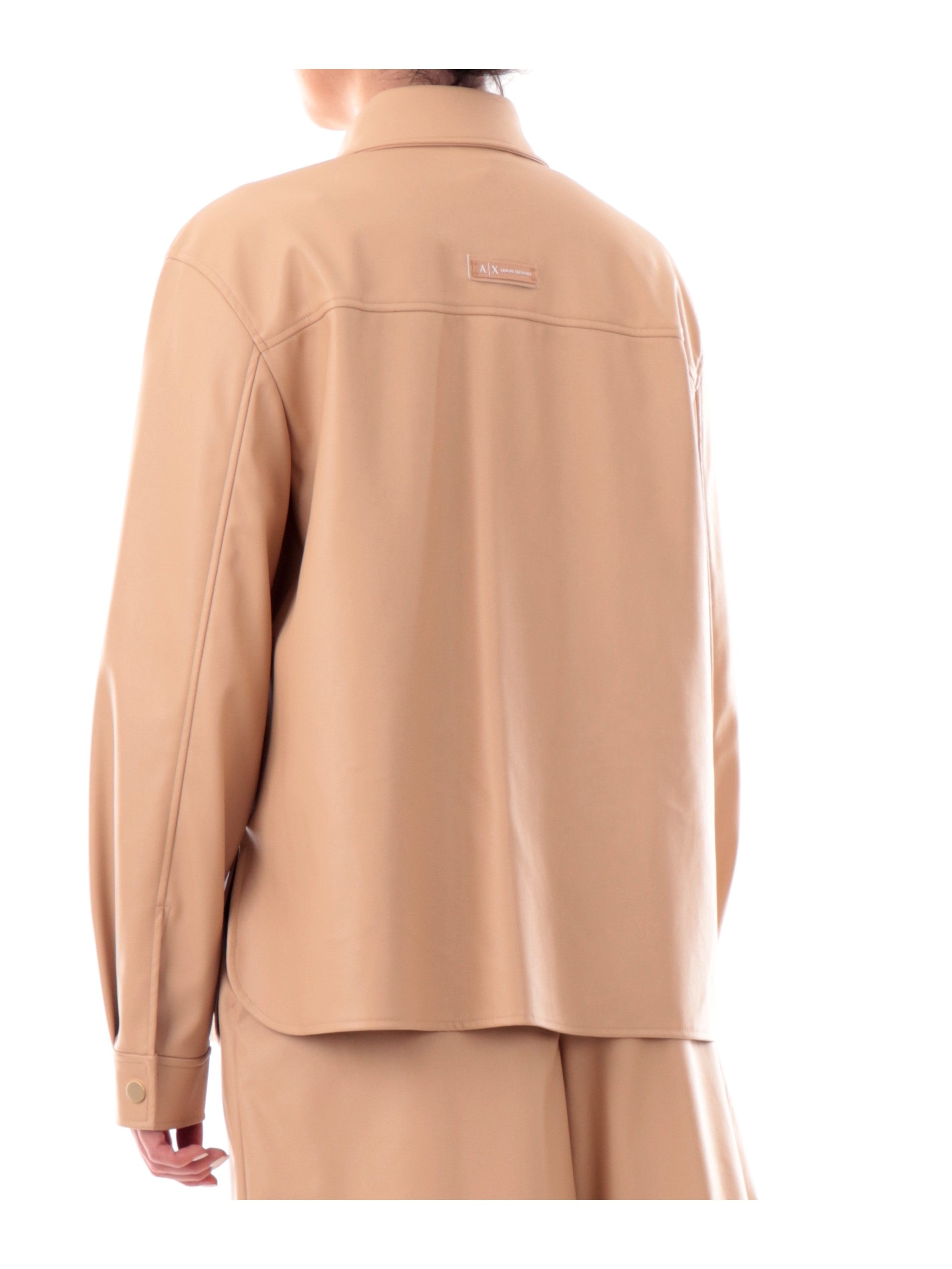 Camicia Ecopelle Armani Exchange AX con bottoni oro satinati. Questa camicia beige ecopelle da donna Armani è realizzata in morbida ed elegante ecopelle, colletto e linee femminili. Una camicia felpata all'interno che ti permetterà di utilizzarla anche come giubbino.