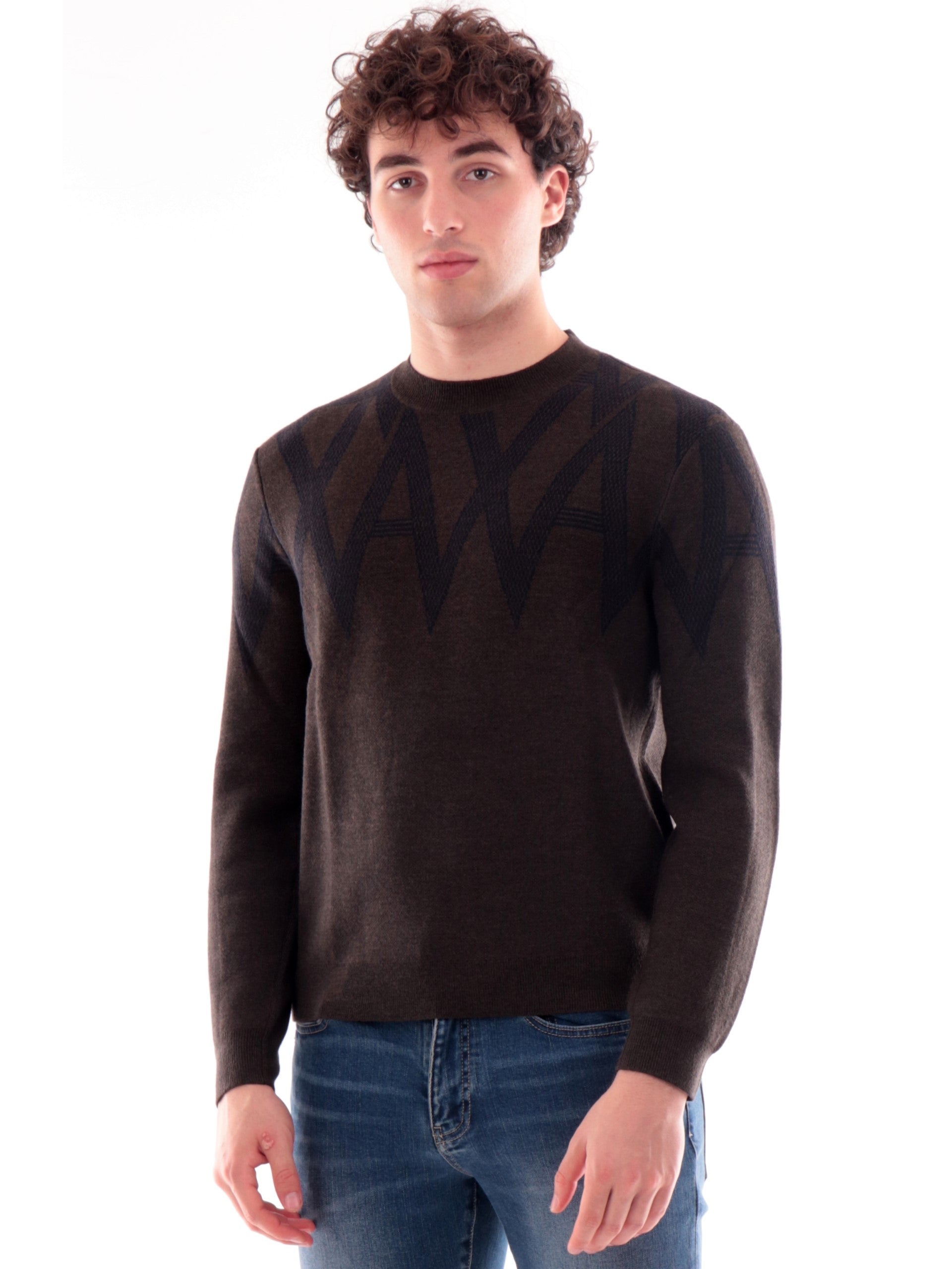 Maglione Armani Exchange AX marrone girocollo da uomo logo AX all over XM001338AF14007