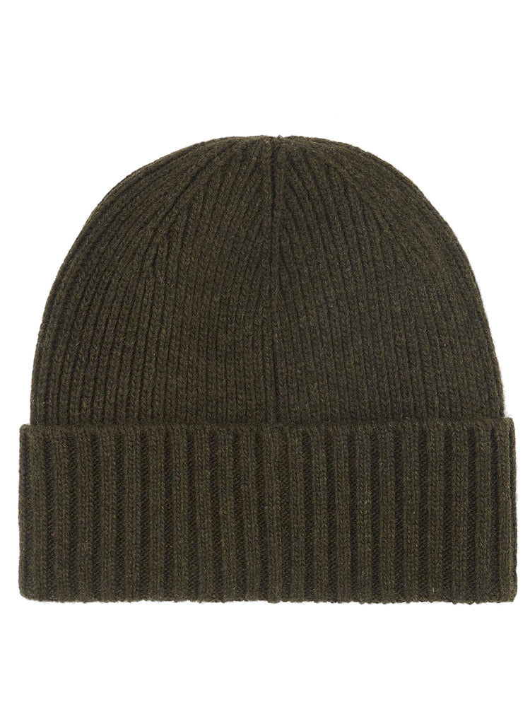 Barbour Military Green Carlton Beanie Hat with fleece lining. This military green Barbour hat is Barbour's iconic ribbed knit beanie with fleece interior.