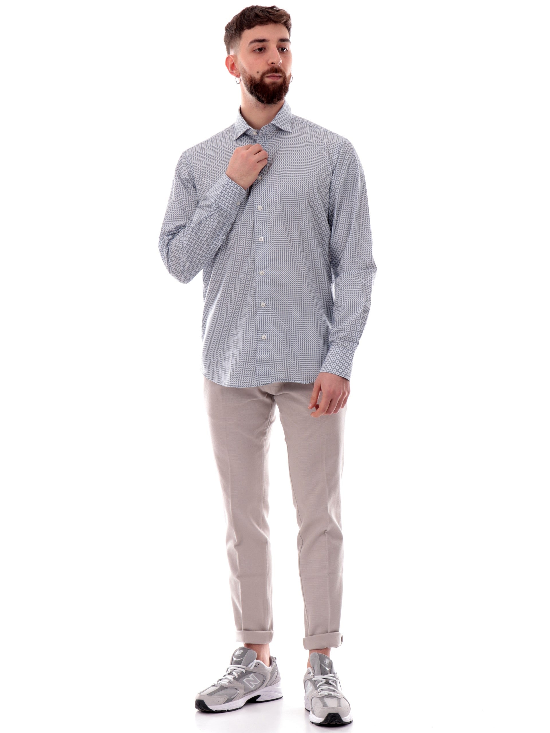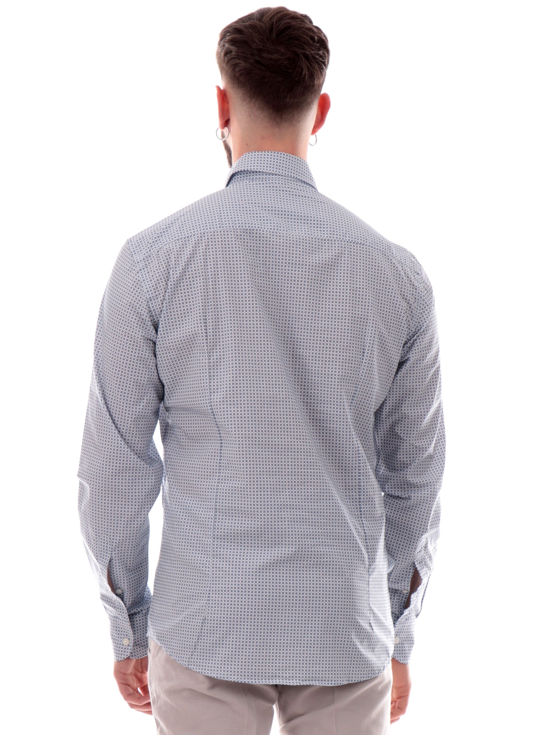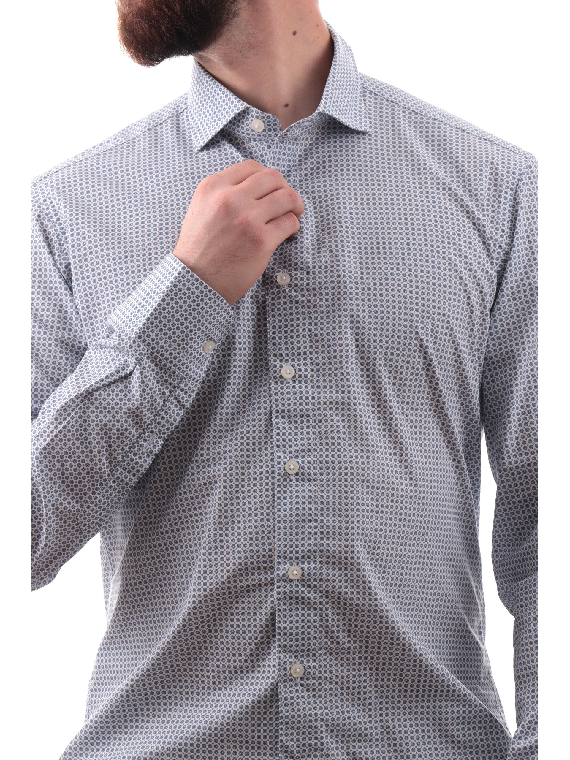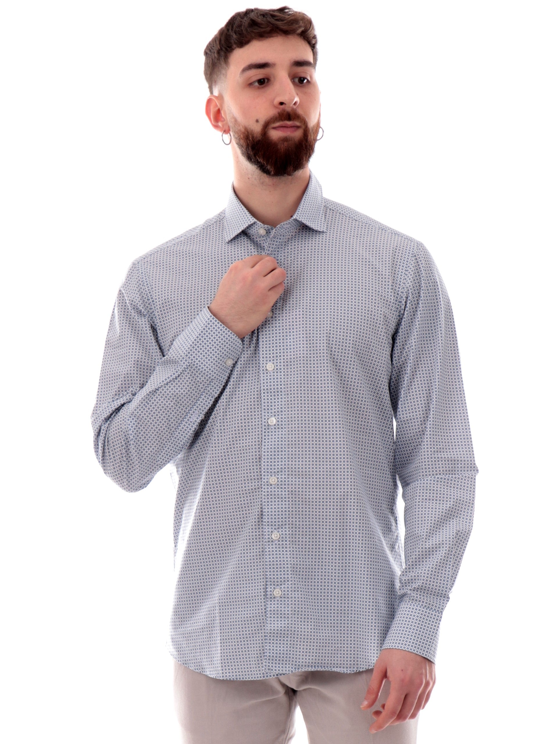 Camicia Bastoncino bianca fantasia geo da uomo 42351, realizzata in 100% puro cotone. Questa camicia uomo Bastoncino bianca ha il colletto alla francese, la chiusura con bottoni, le maniche lunghe e la fantasia geo all over.