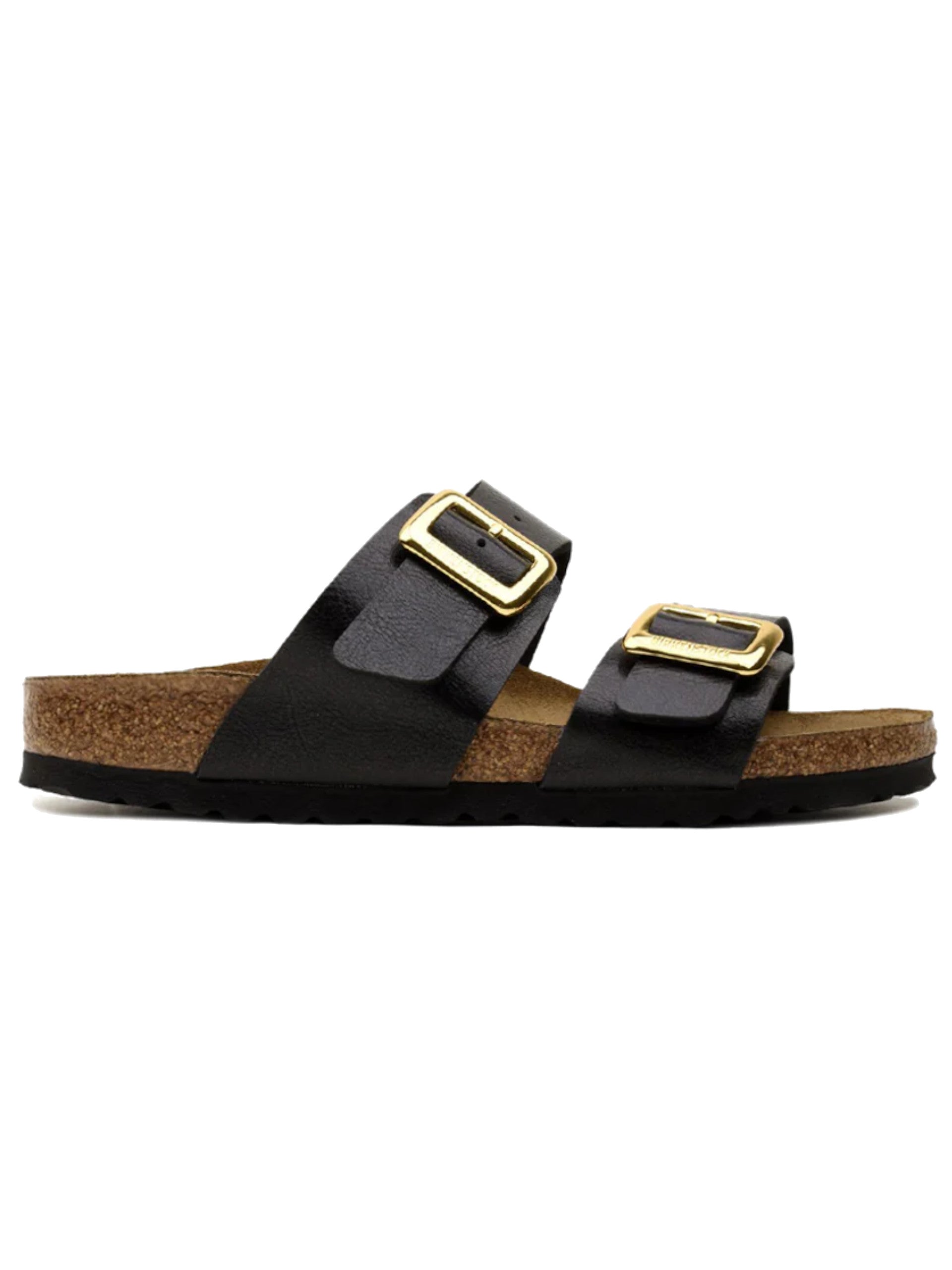 Sandali Birkenstock Sydney Cushion Buckle nero da donna 1029457. Il modello Sydney ha la tomaia in pelle particolarmente spessa, oleata e lavorata senza cuciture. Il plantare dalla forma anatomica insughero e lattice accompagna dolcemente i tuoi passi. Completa le caratteristiche del modello Sydney un doppio cinturino con una fibbia di metallo regolabile individualmente.